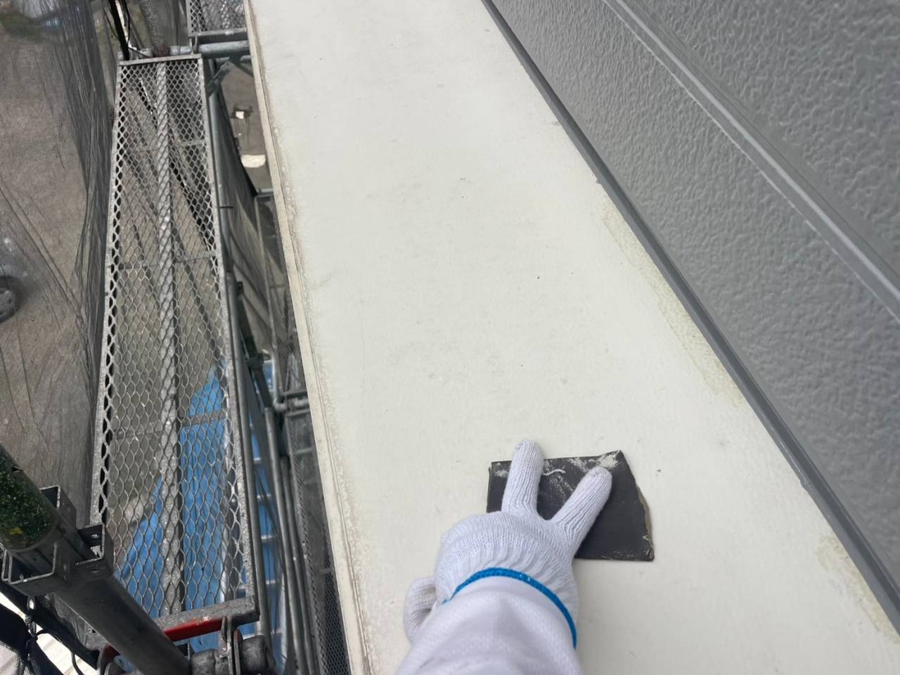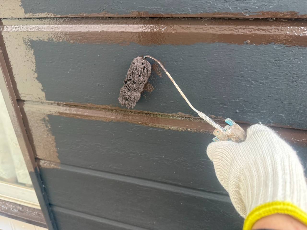 町田市のI様邸、外壁塗装工事、昨日の作業内容は外壁の下地処理と付帯部の下塗りです。