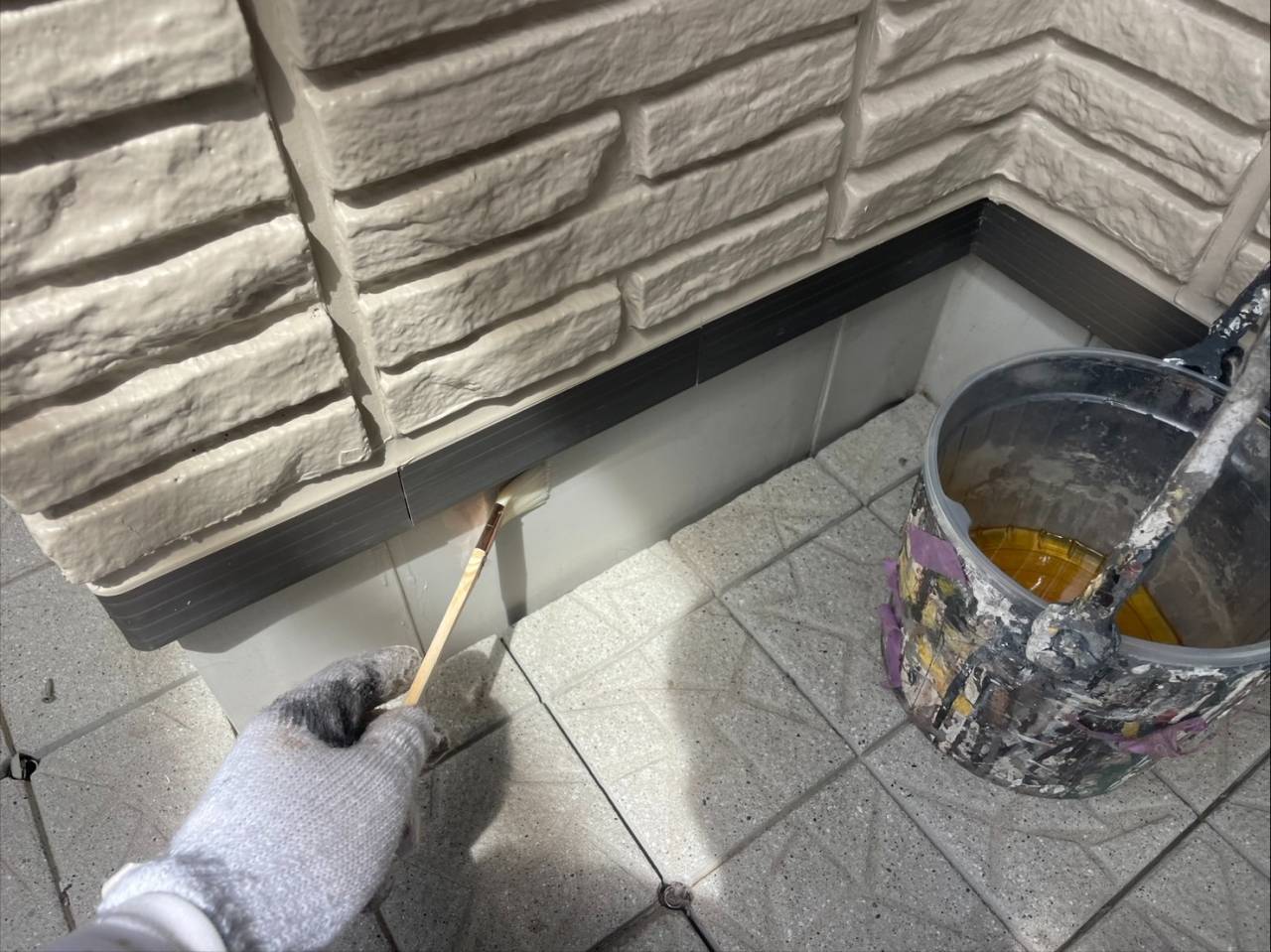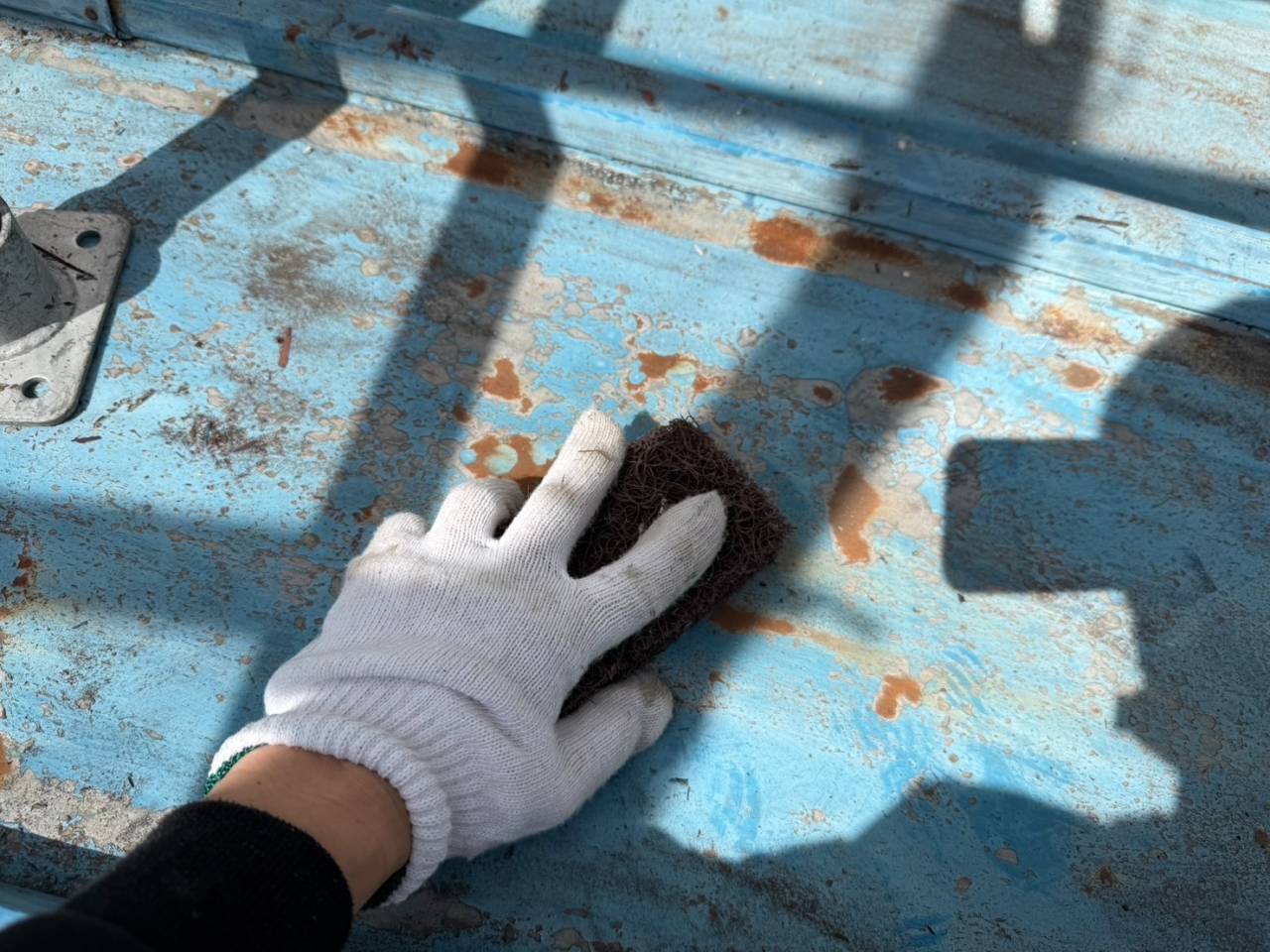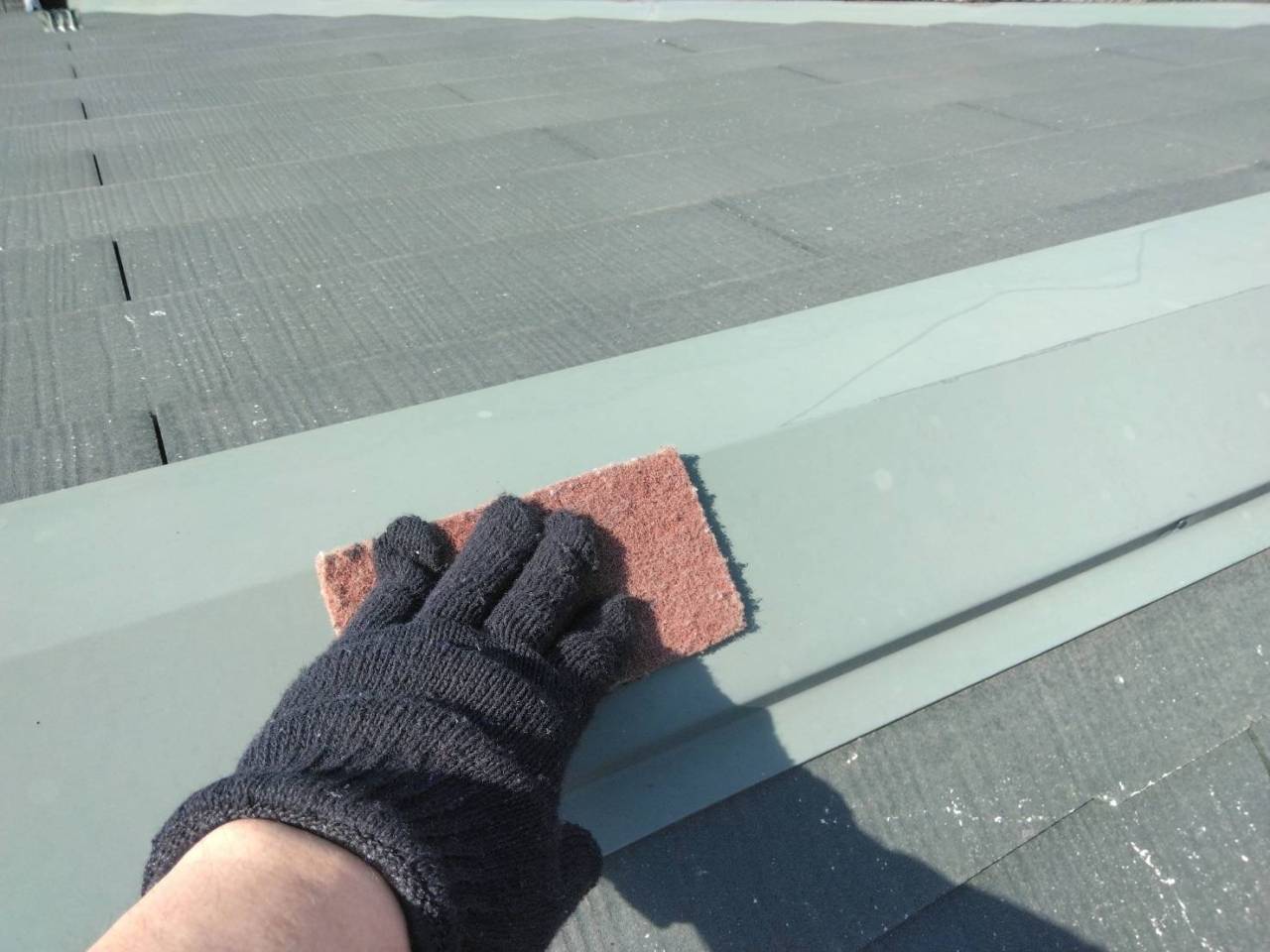相模原市のM様邸、外壁塗装・屋根塗装工事、本日の作業内容は養生続き、鉄部錆止めです。