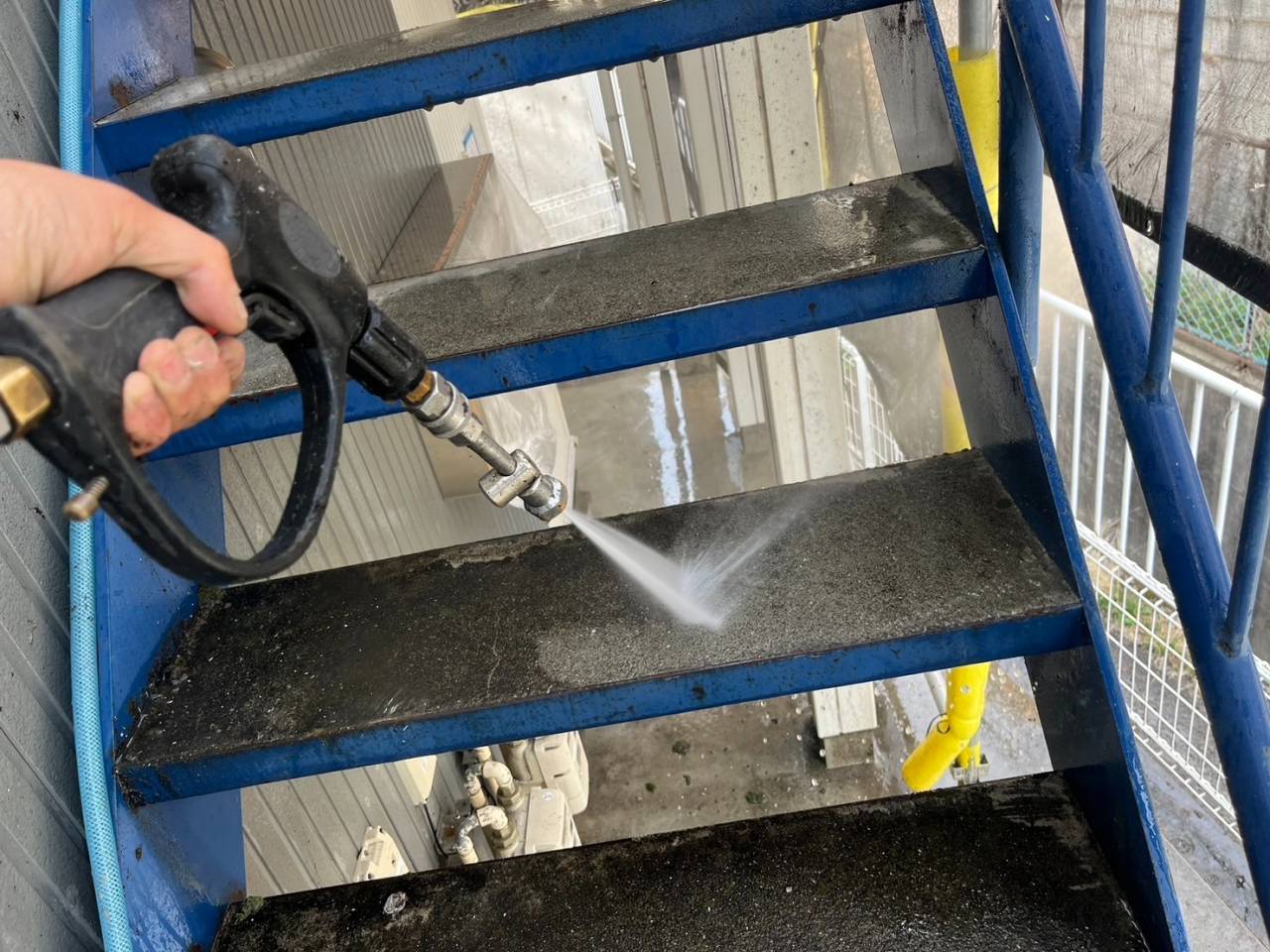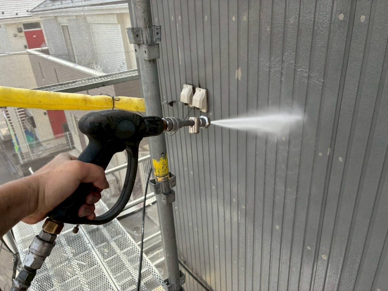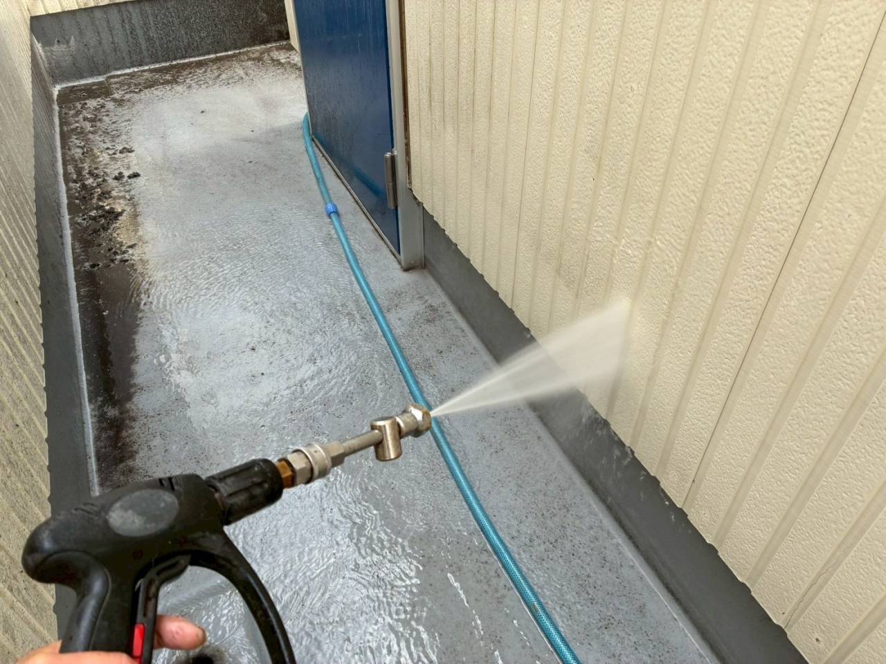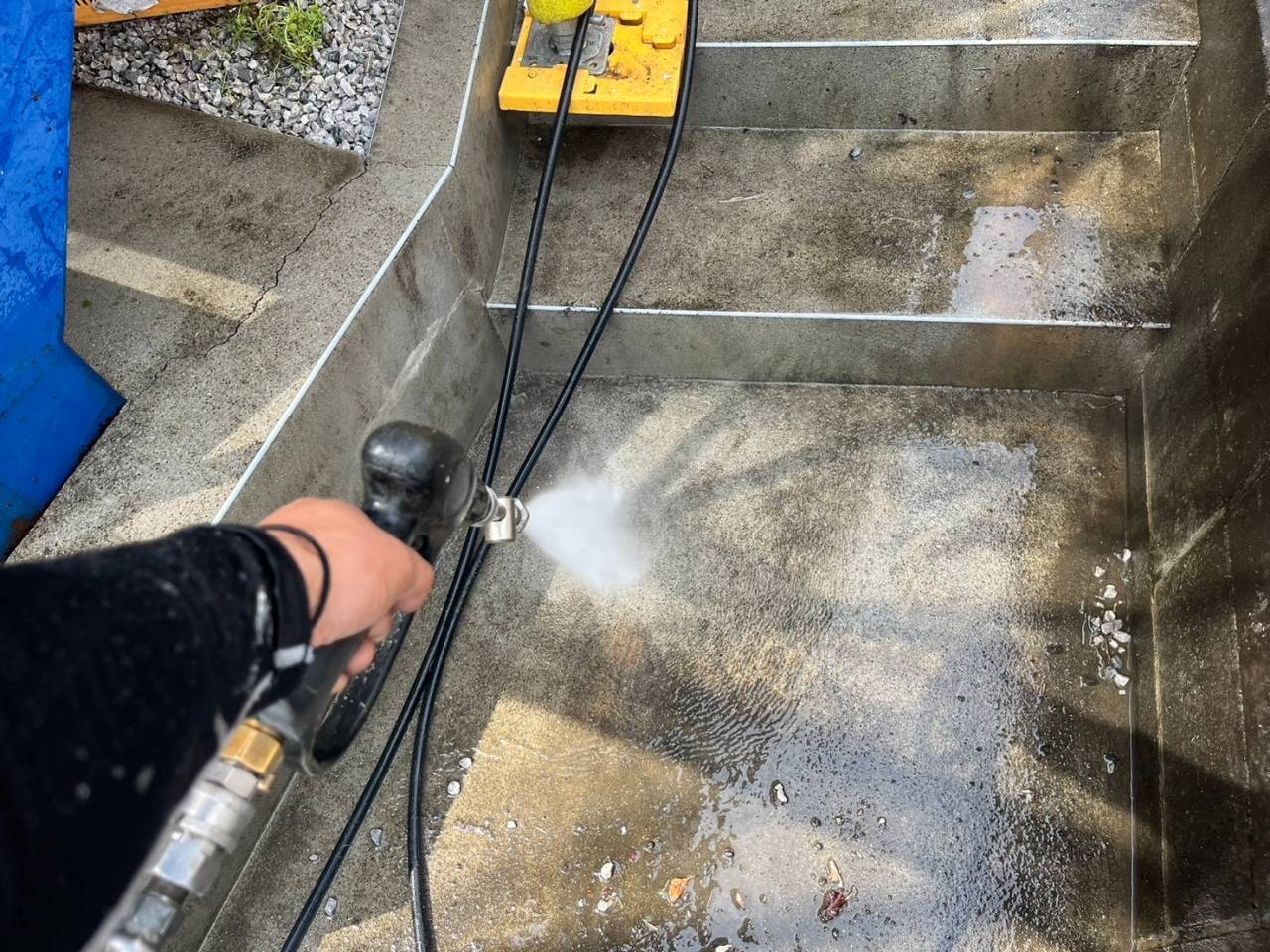 本日の作業内容、高圧水洗浄です。