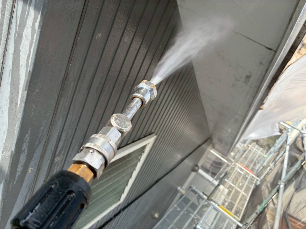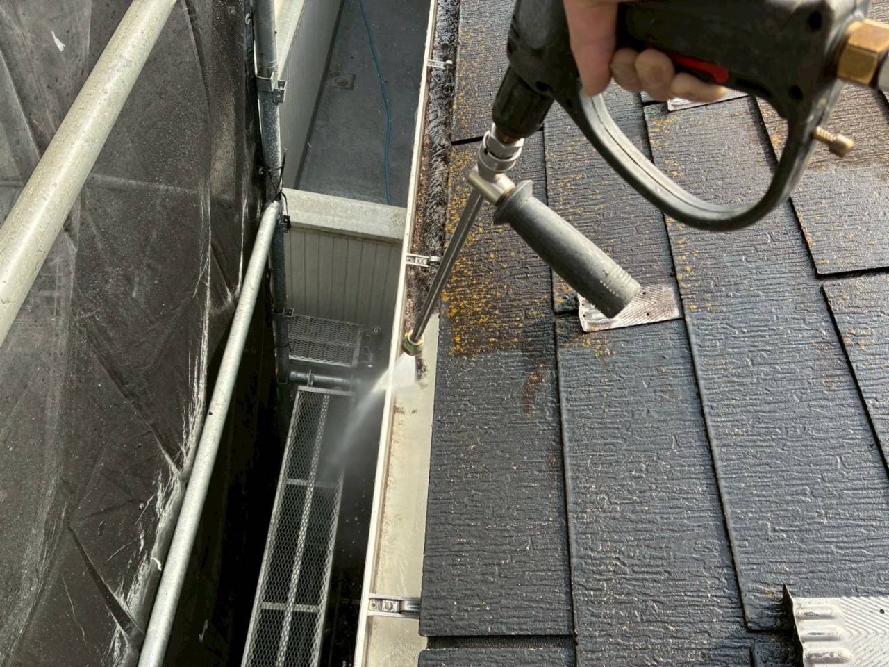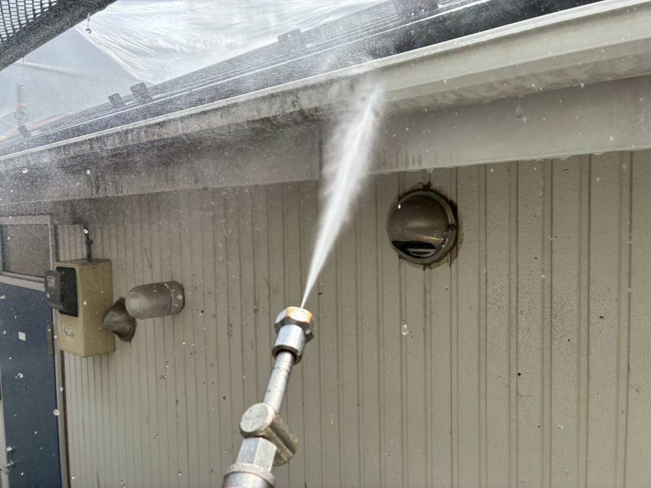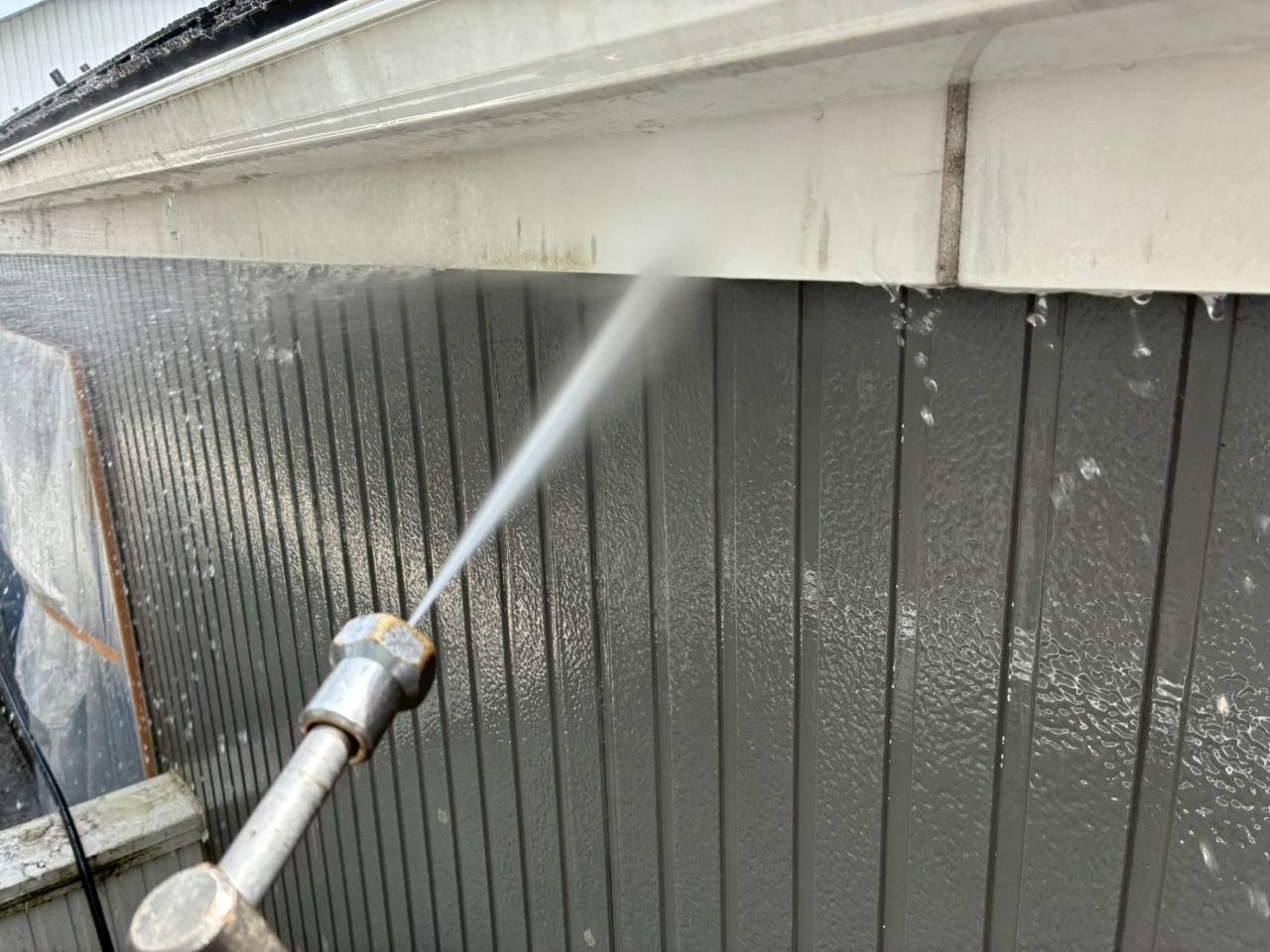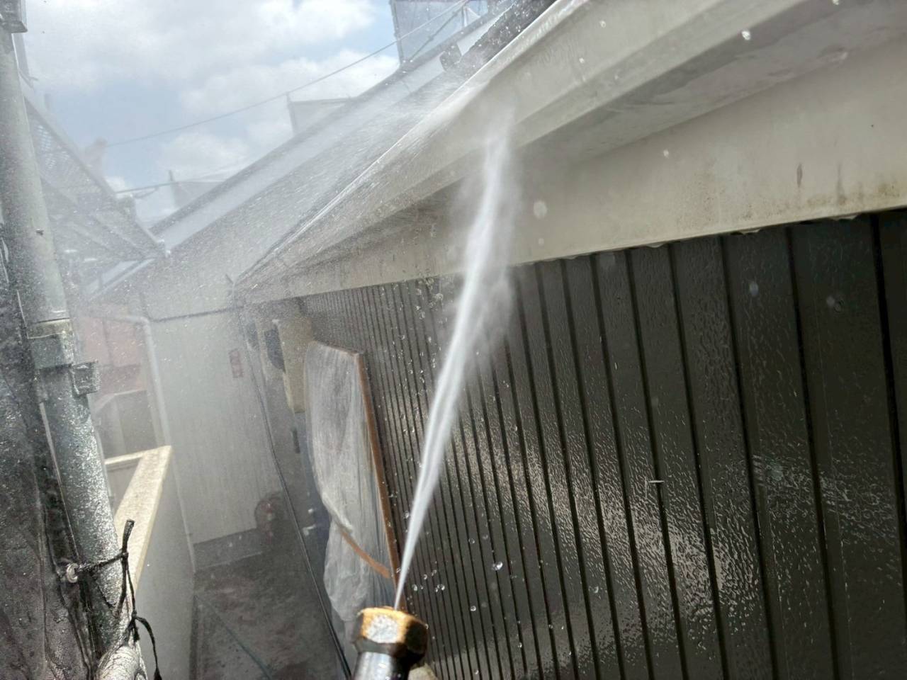 本日の作業内容、高圧水洗浄です。