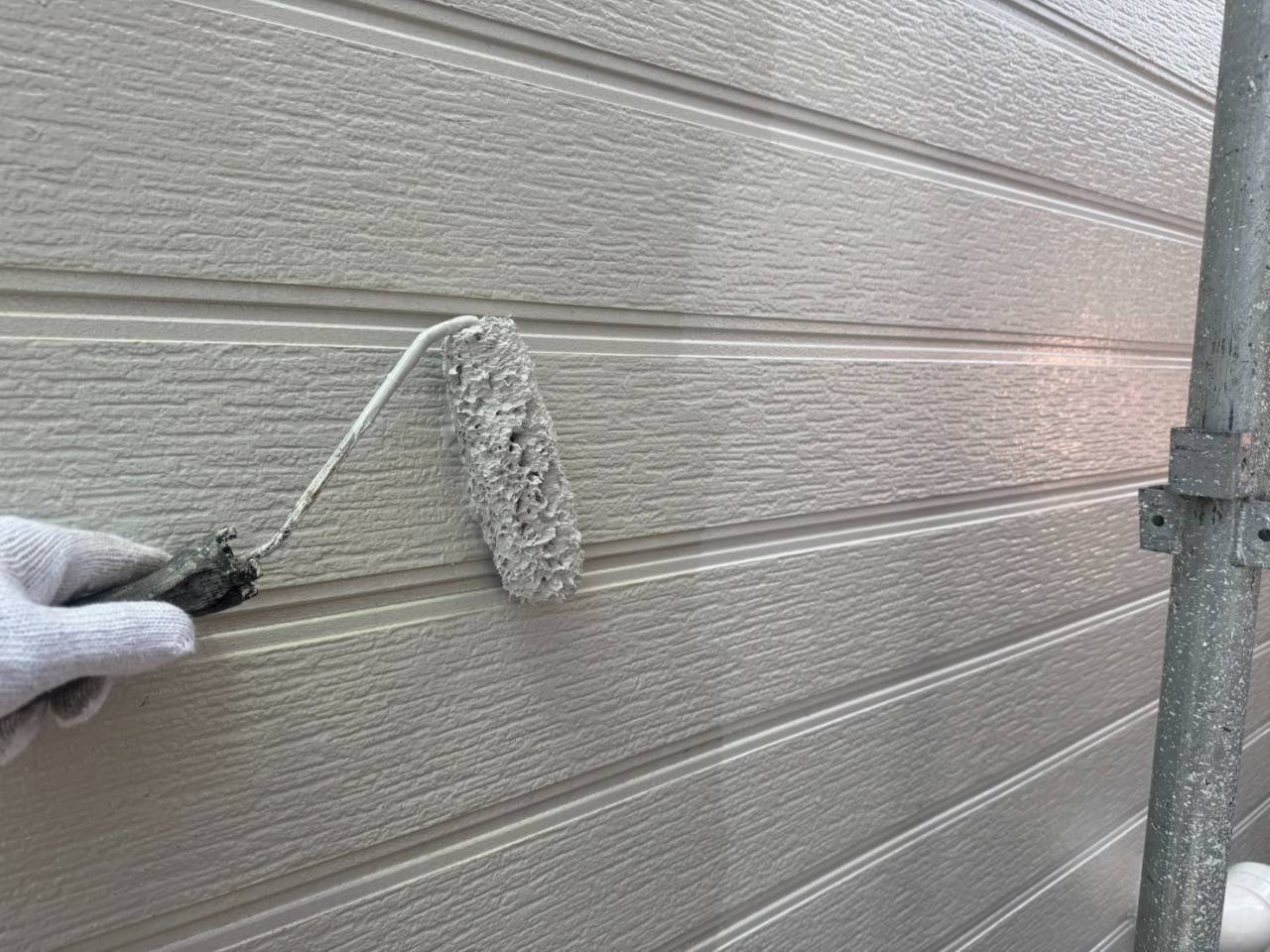 外壁中塗り、屋根中塗り、外壁一面上塗りです。