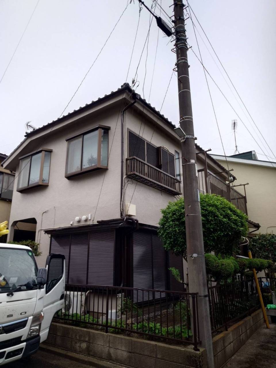 座間市のO様邸、外壁塗装工事、本日の作業内容は足場の解体です。