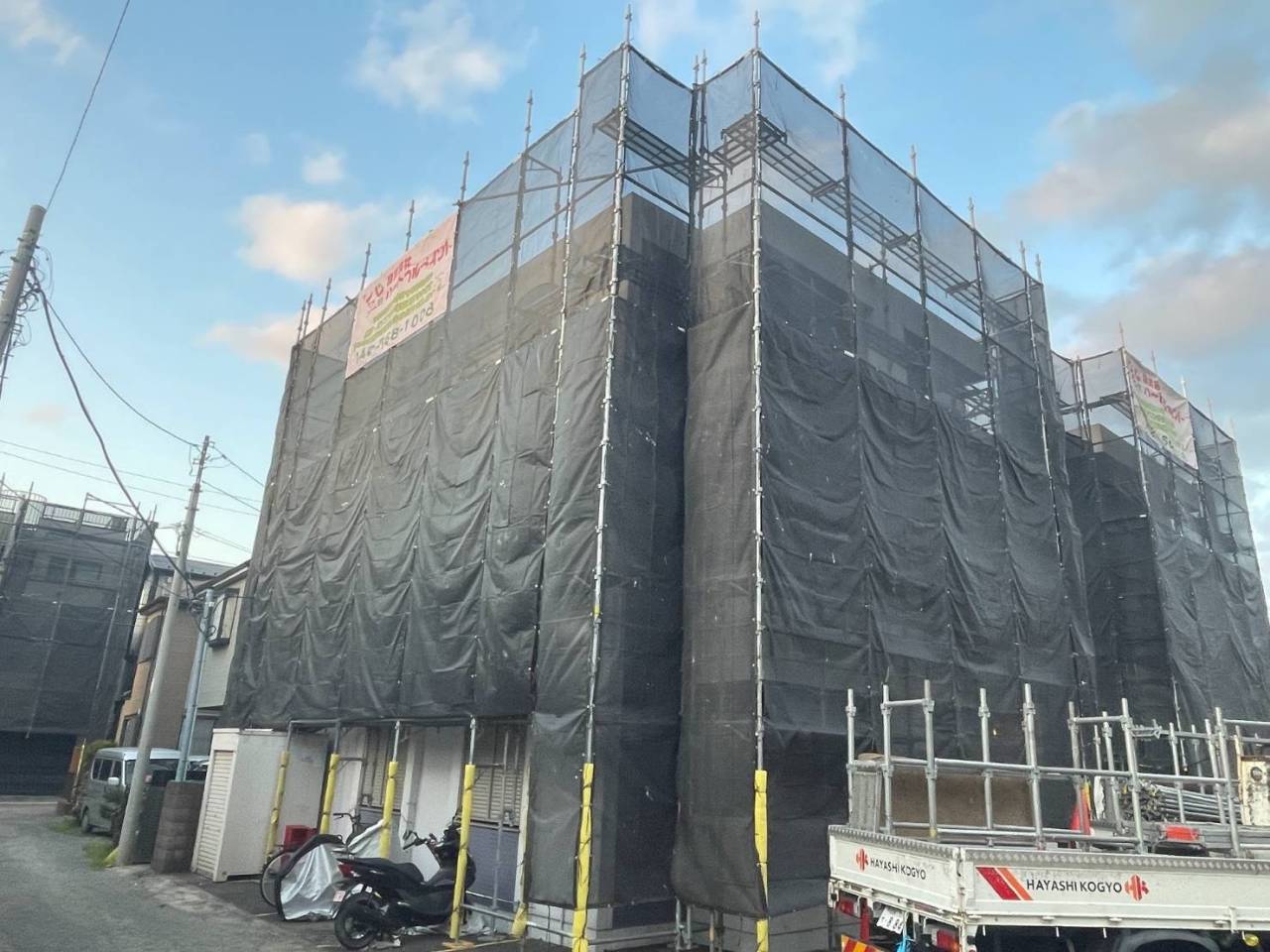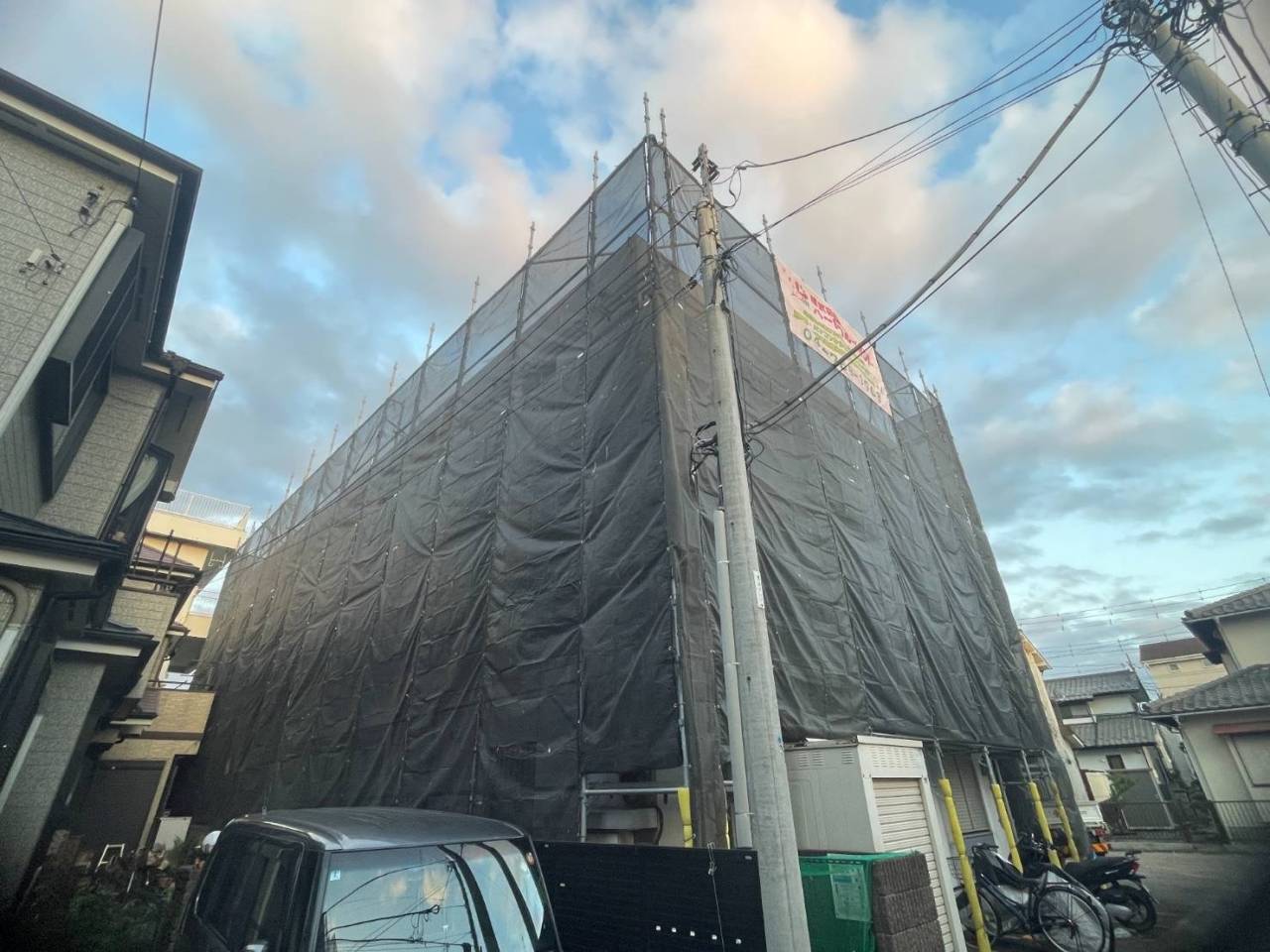 海老名市のY様A・H集合住宅、外装リフレッシュ工事、本日の作業内容は足場の組立です。