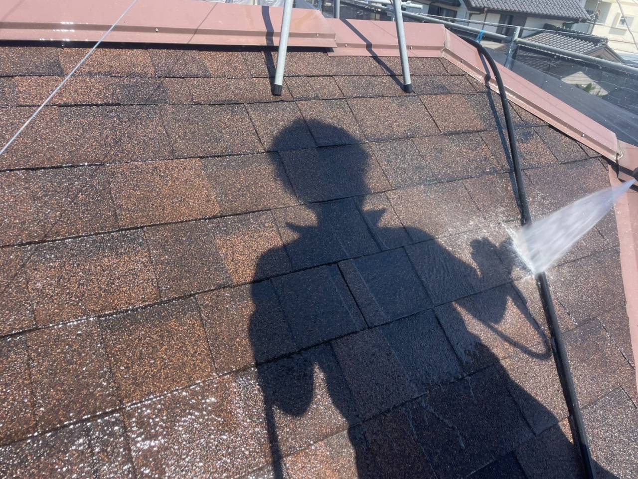 相模原市のN様邸、外壁塗装・屋根塗装工事、本日の作業内容は高圧水洗浄です。