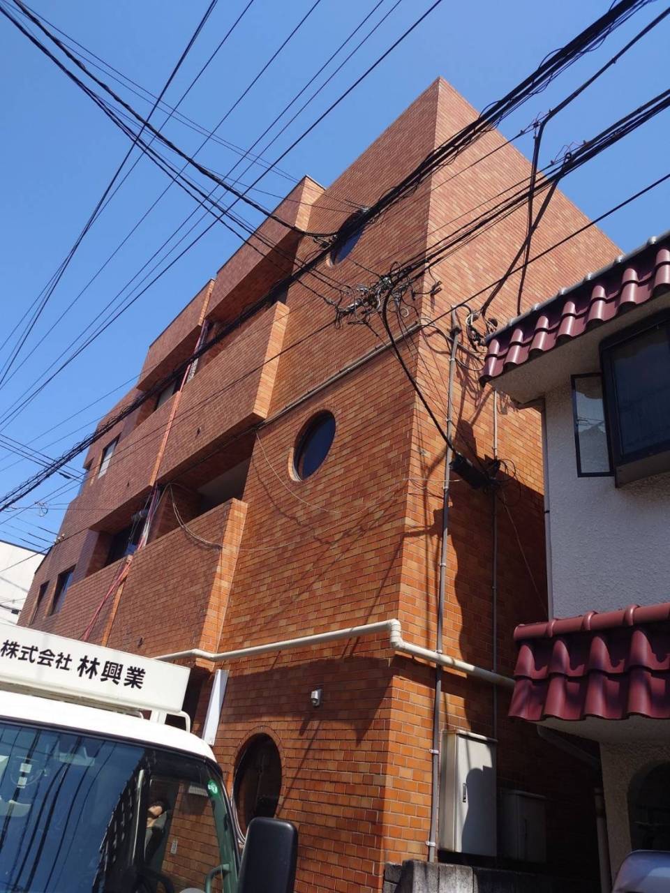 相模原市のH様ビル、外壁塗装工事、本日の作業内容は足場の解体です。
