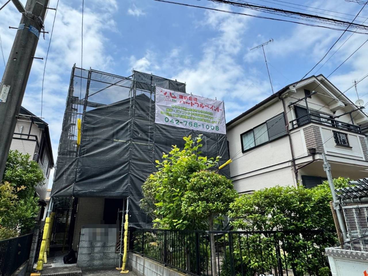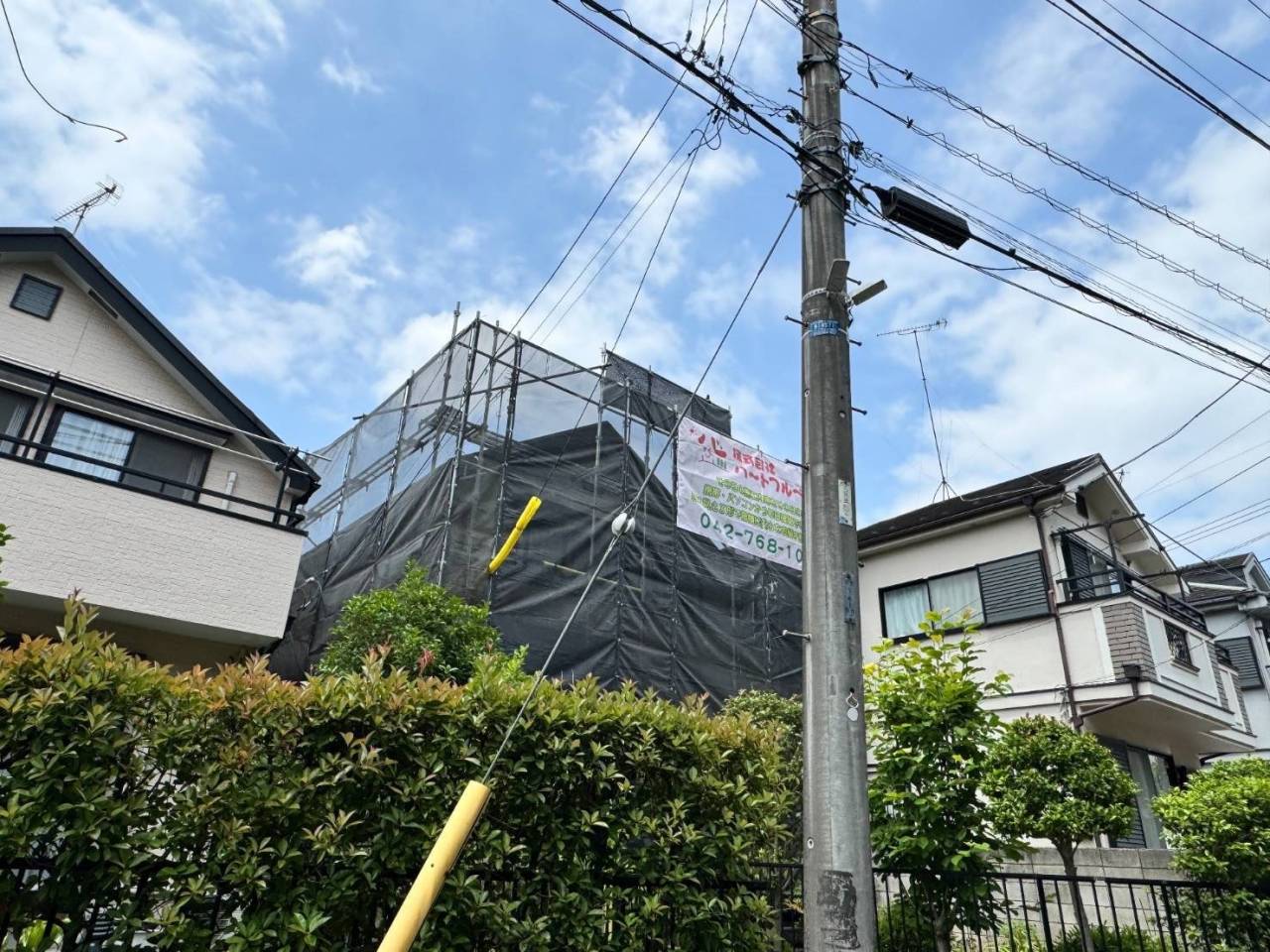 八王子市のT様邸、外壁塗装・屋根塗装工事、本日の作業内容は足場の組立です。