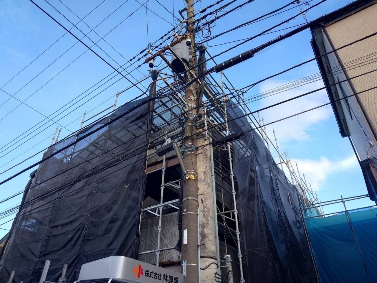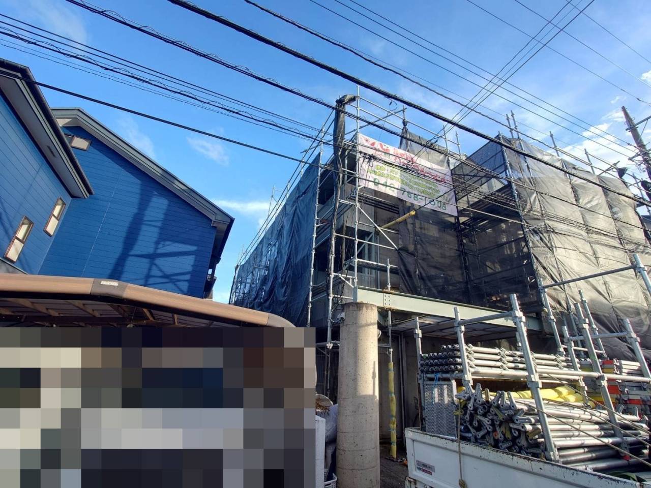 相模原市のF様D・T集合住宅、鉄部塗装工事、本日の作業内容は足場の組立です。