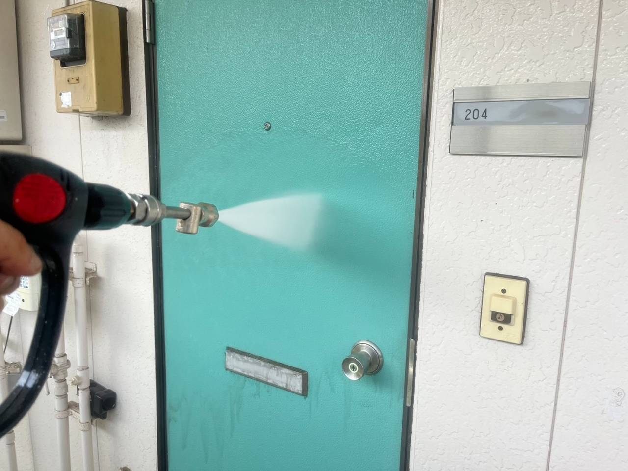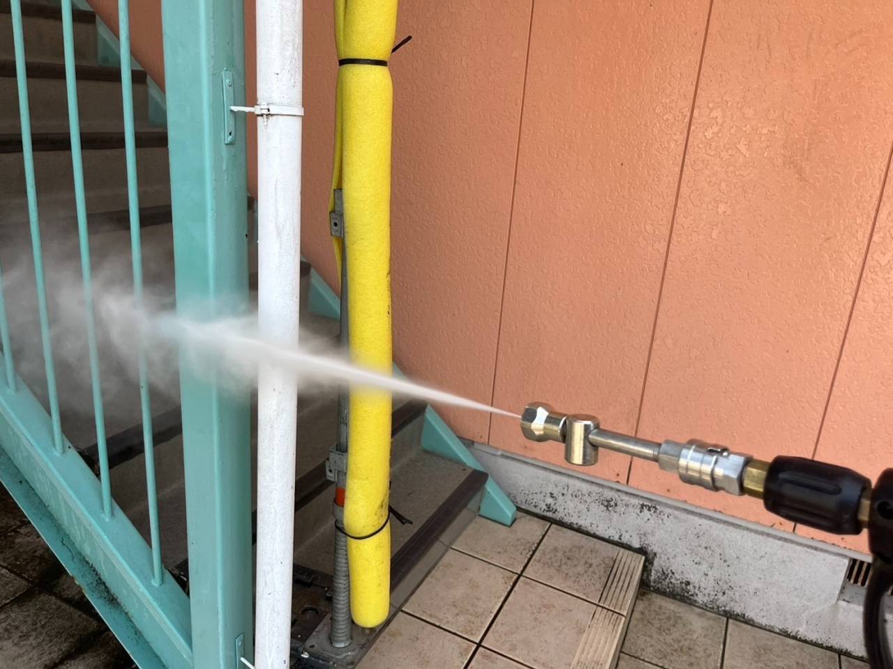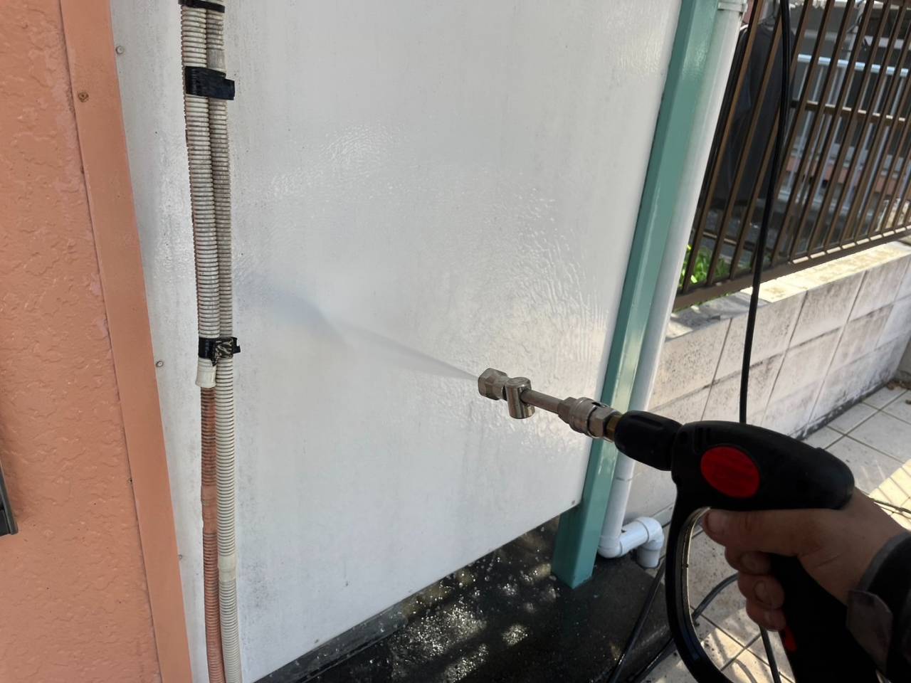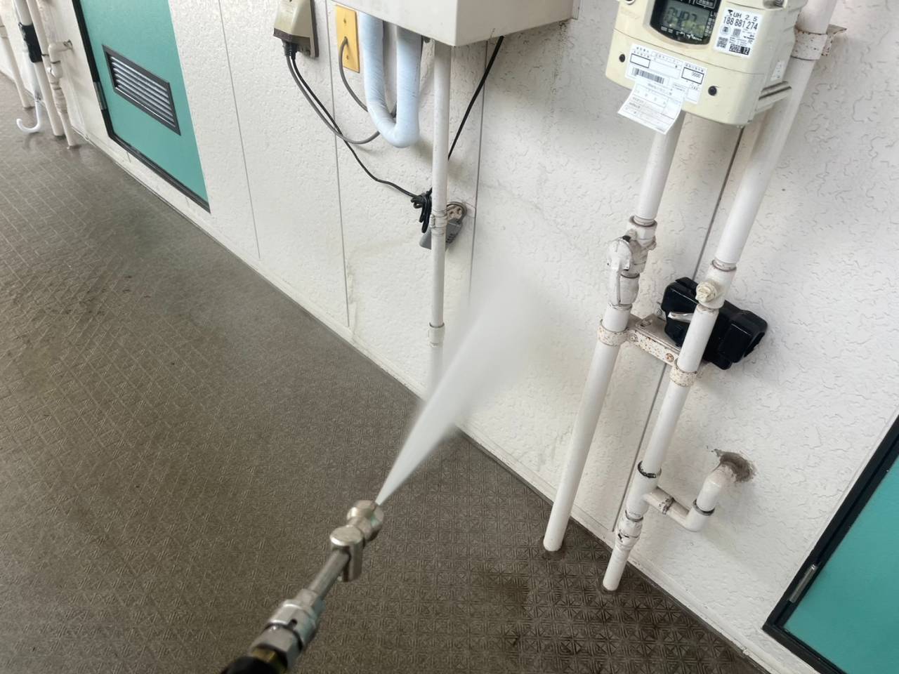 昨日の作業内容、高圧水洗浄です。