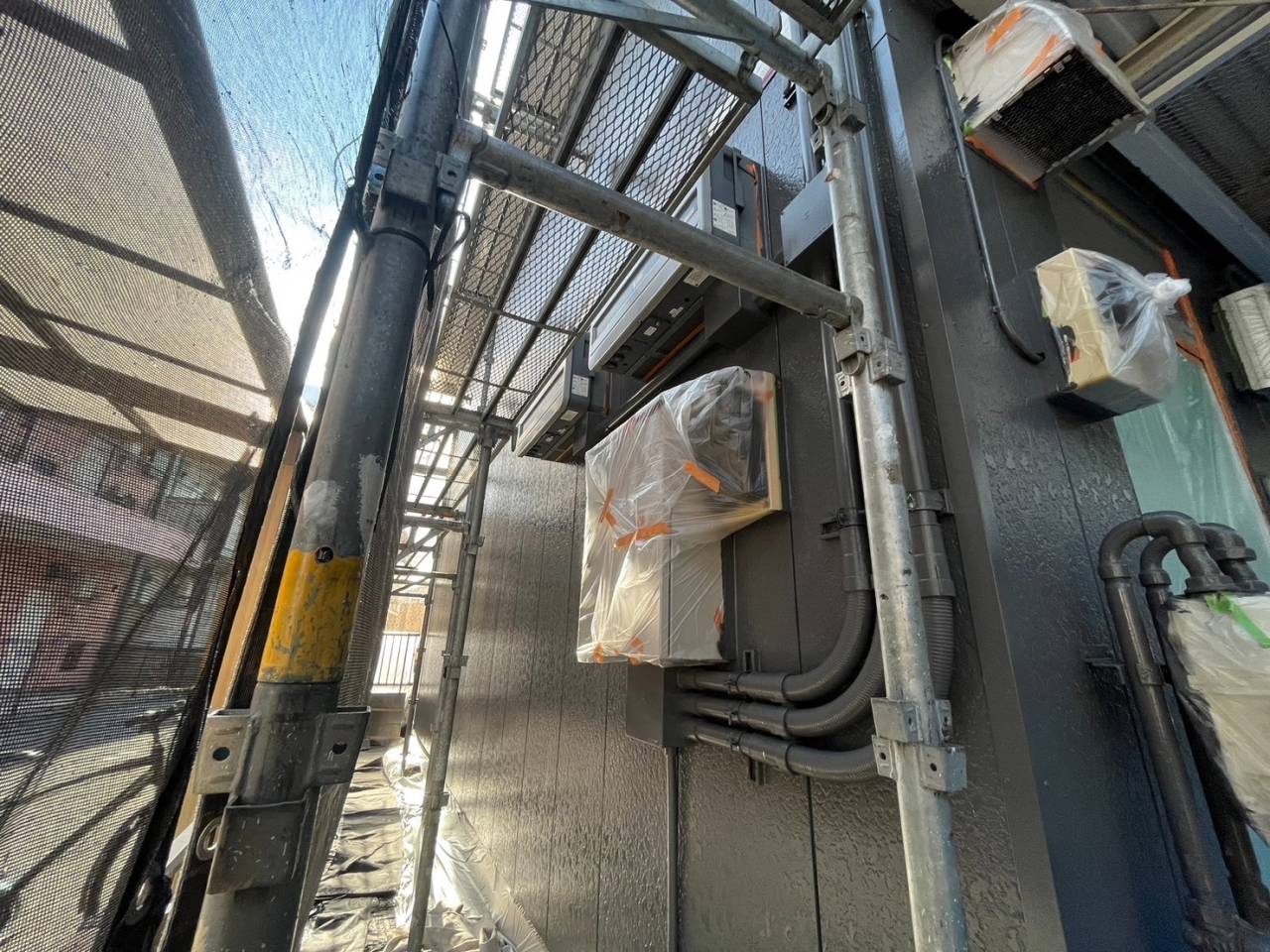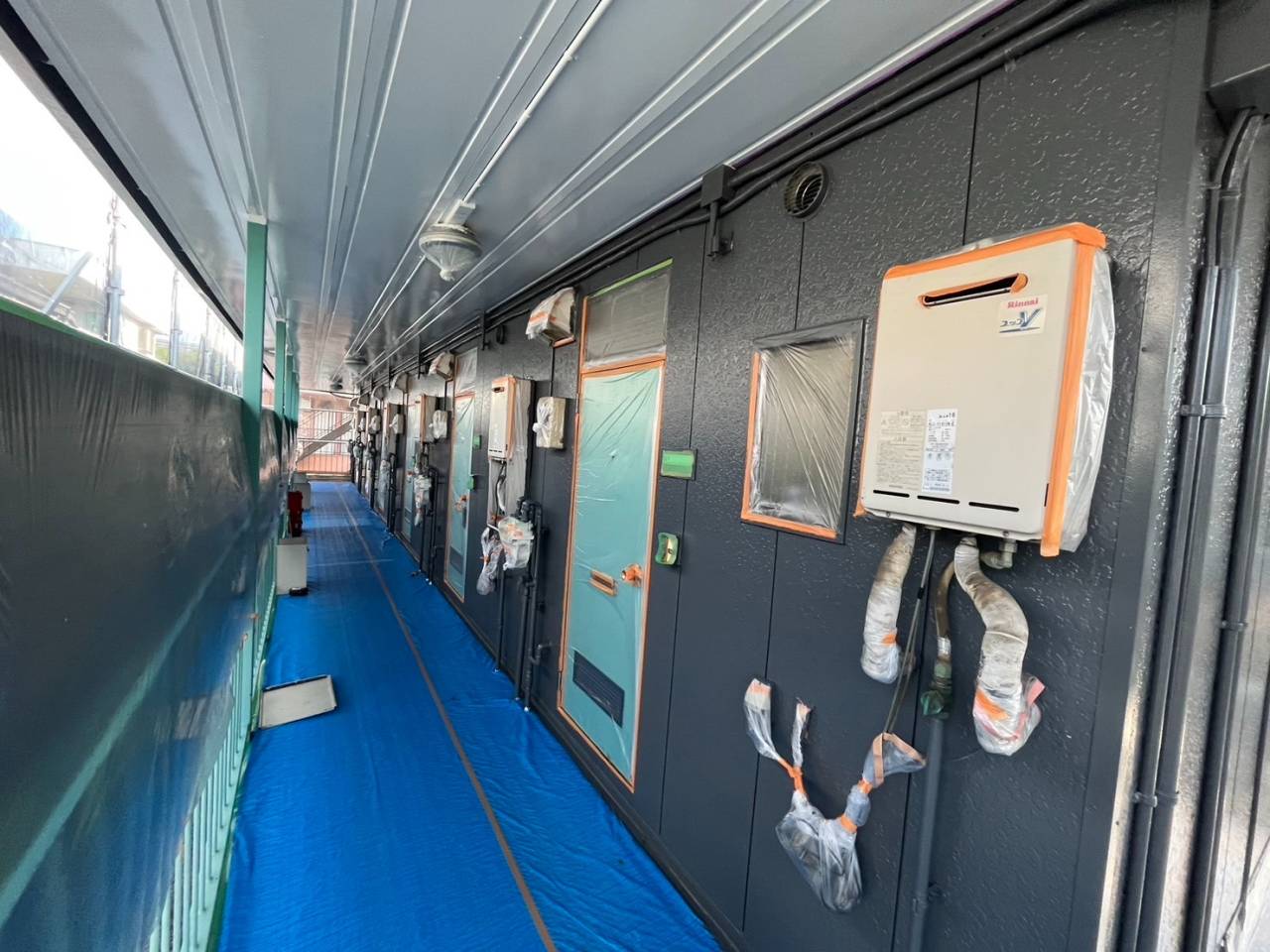 八王子市のI様F・H集合住宅、外壁リフレッシュ工事、本日の作業内容は外壁中塗り続きです。