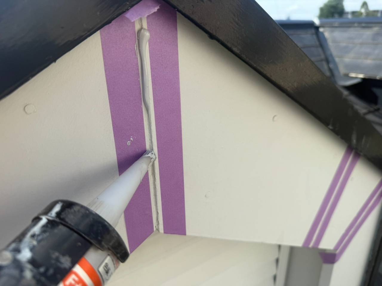 破風板シール、養生です。