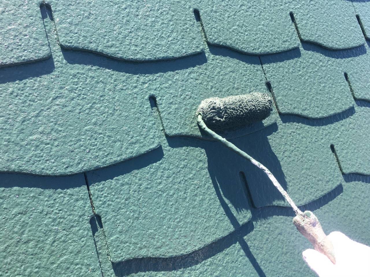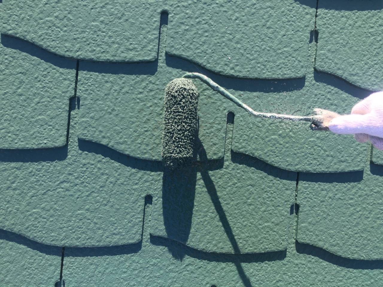 相模原市のY様邸、外壁塗装・屋根塗装工事、本日の作業内容は外壁上塗り、屋根上塗りです。