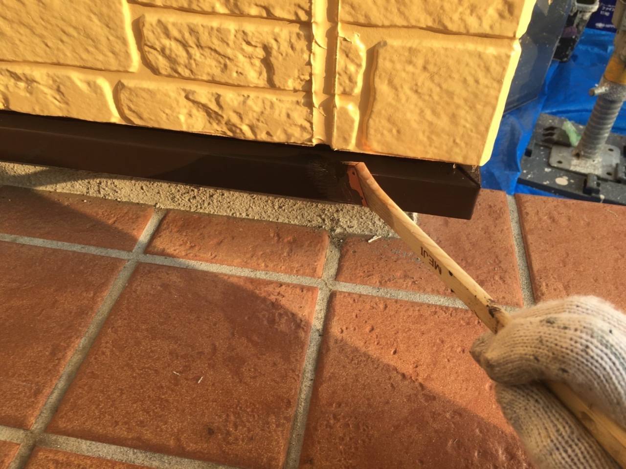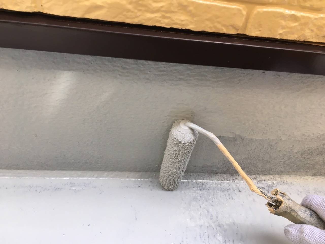 相模原市のY様邸、外壁塗装・屋根塗装工事、本日の作業内容は付帯部塗装続き、ベランダウレタン防水二層目塗布です。