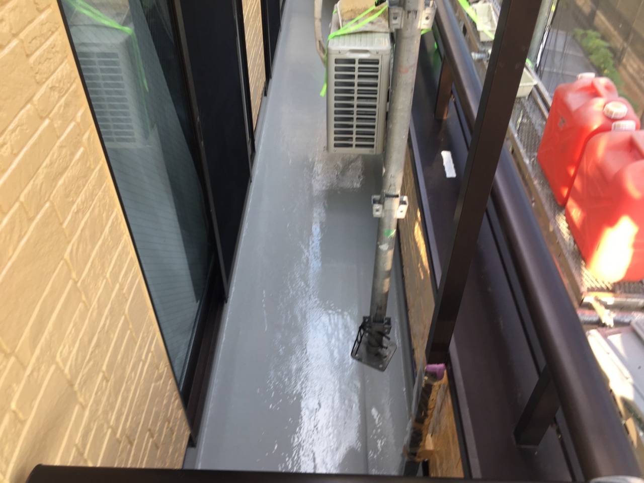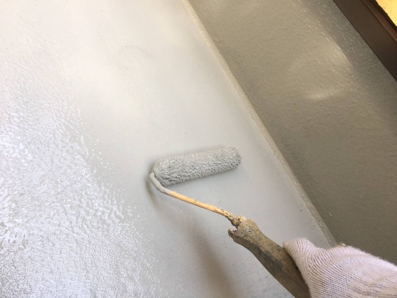 付帯部塗装続き、ベランダウレタン防水二層目塗布です。