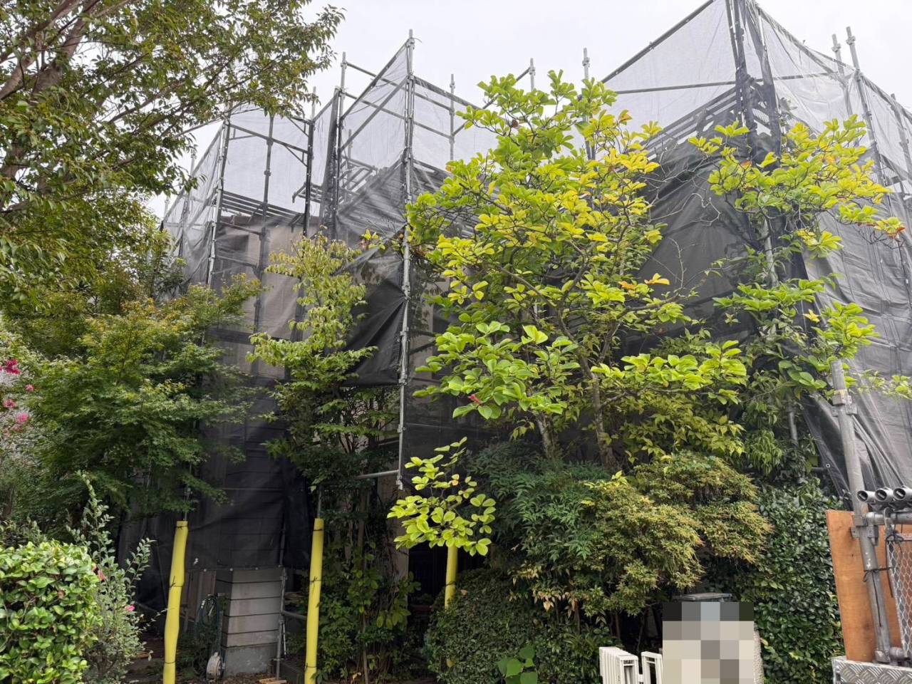 八王子市のK様邸、屋根葺き替え工事、本日の作業内容は足場の組立です。