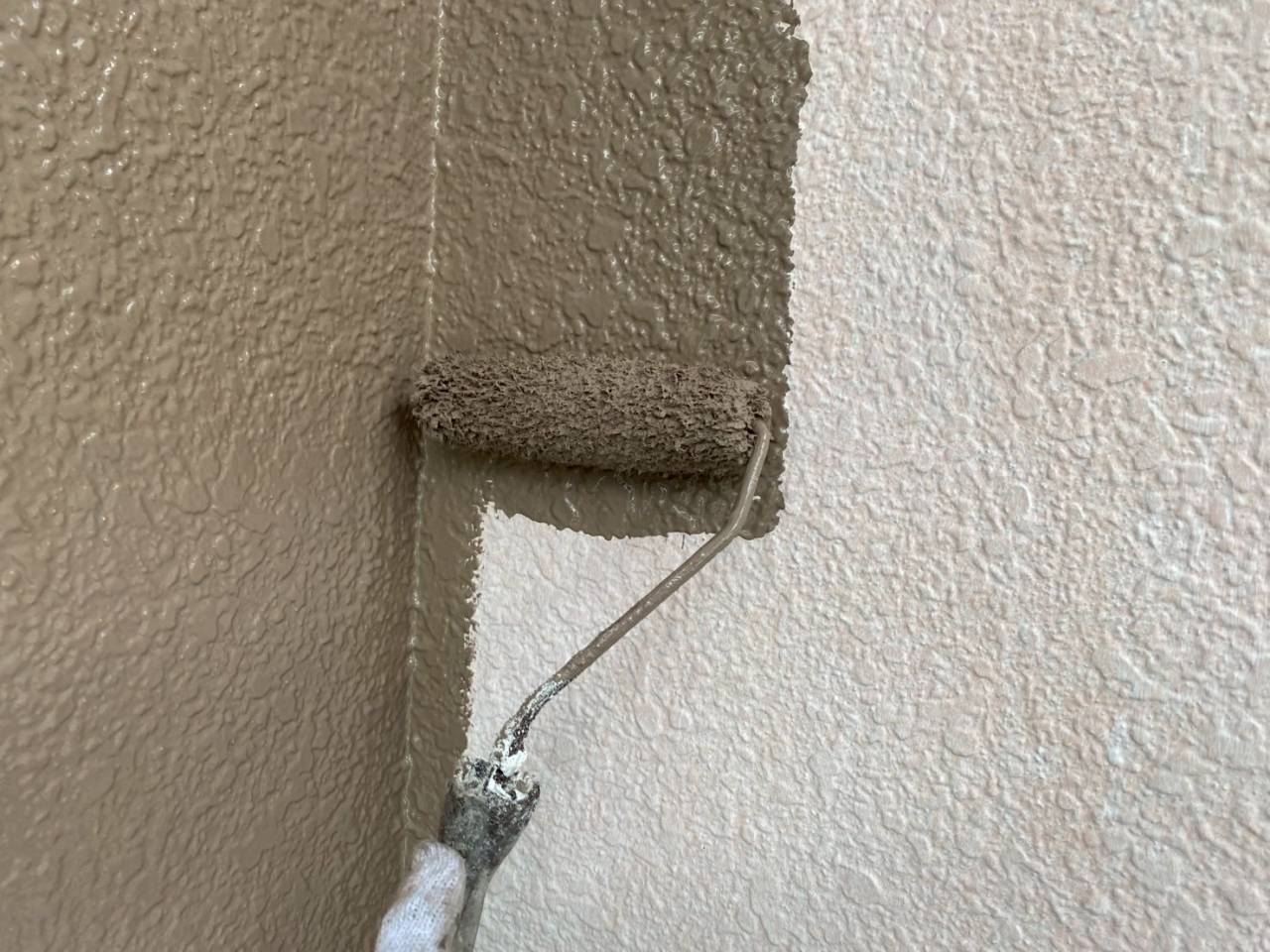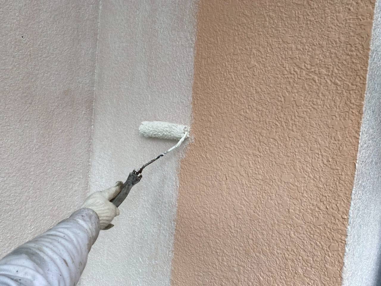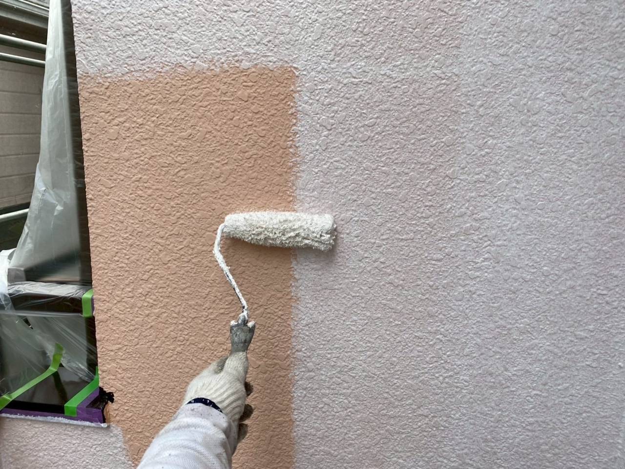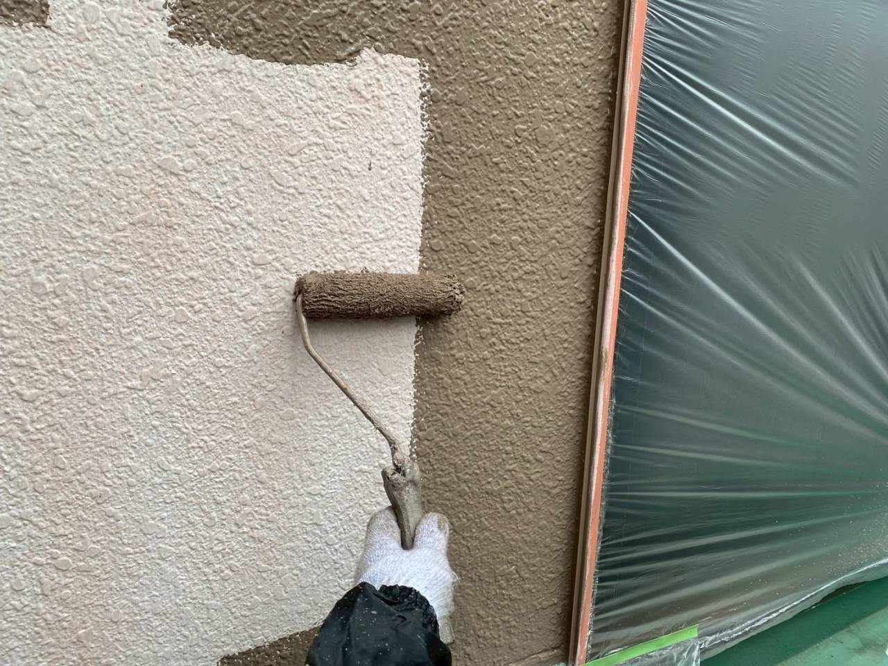 相模原市のK様物件、外壁塗装・屋根塗装工事、本日の作業内容は外壁下塗り、外壁中塗りです。