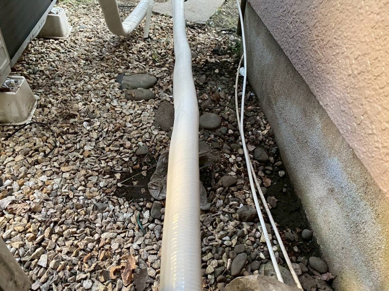 ベランダウレタン防水二層目塗布、エアコン配管ホーステープ巻き、掃除、タッチアップです。