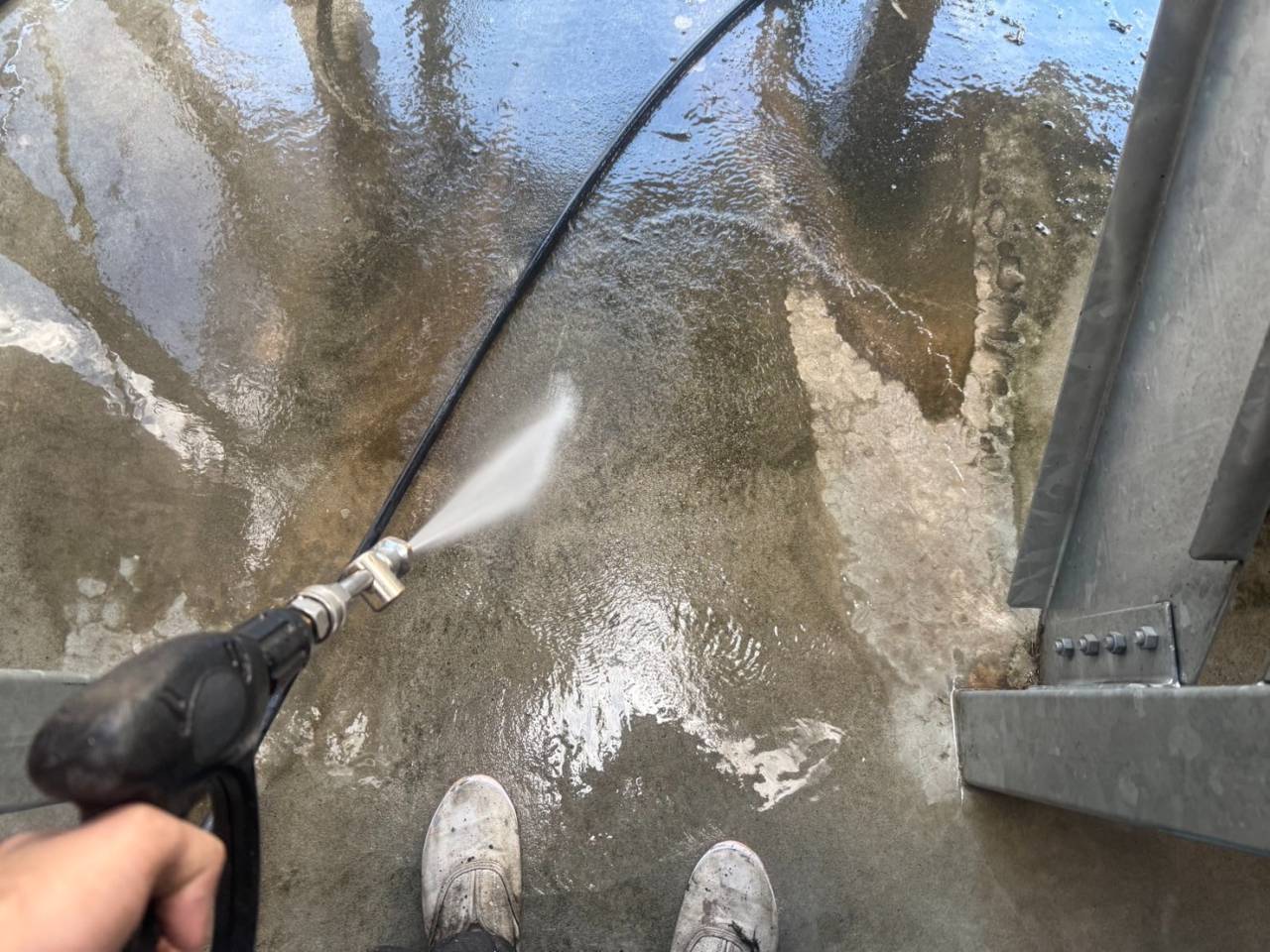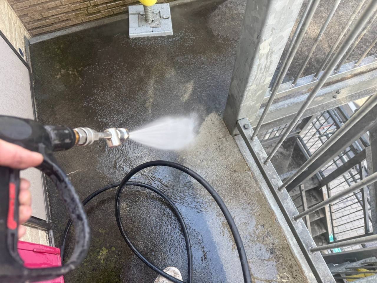 本日の作業内容、高圧水洗浄です。