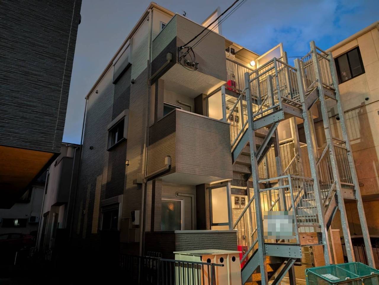 川崎市のF様A・S集合住宅、外装リフレッシュ工事、本日の作業内容は足場の解体です。