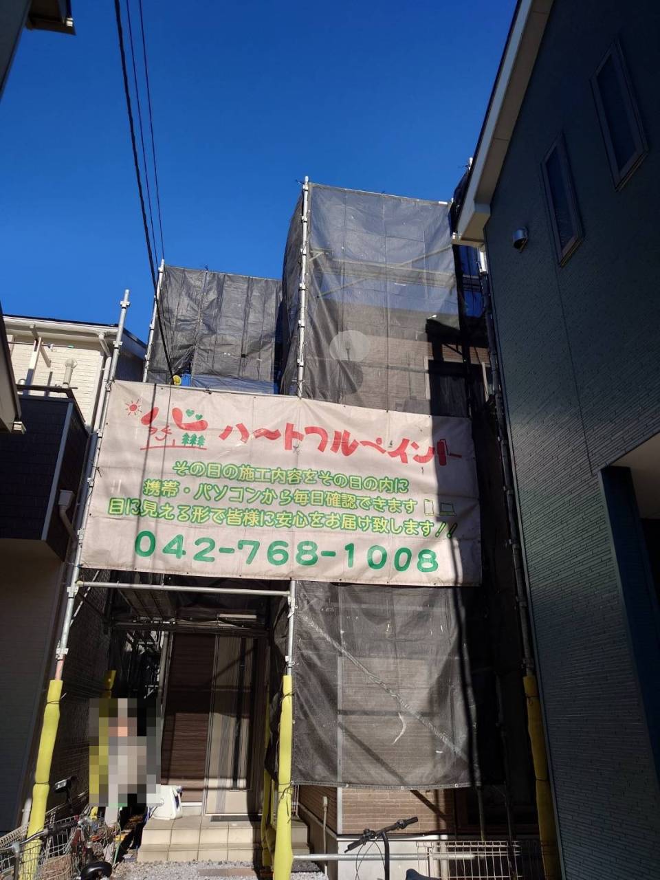 相模原市のK様邸、外壁塗装・屋根塗装工事、本日の作業内容は足場の組立です。
