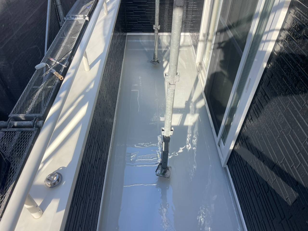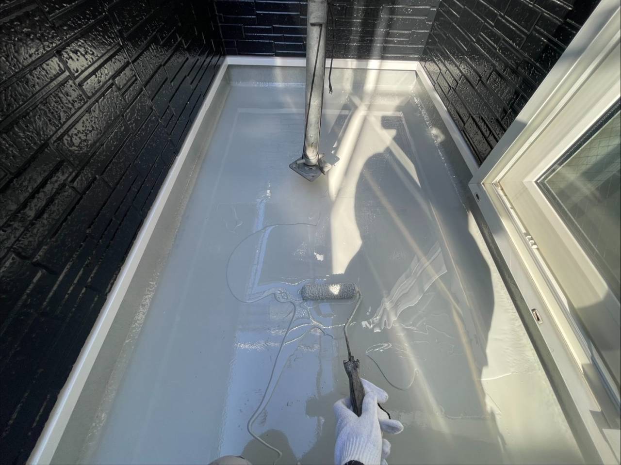 相模原市のO様邸、外壁塗装・屋根塗装工事、昨日の作業内容はベランダウレタン防水二層目塗布、掃除、各所タッチアップです。