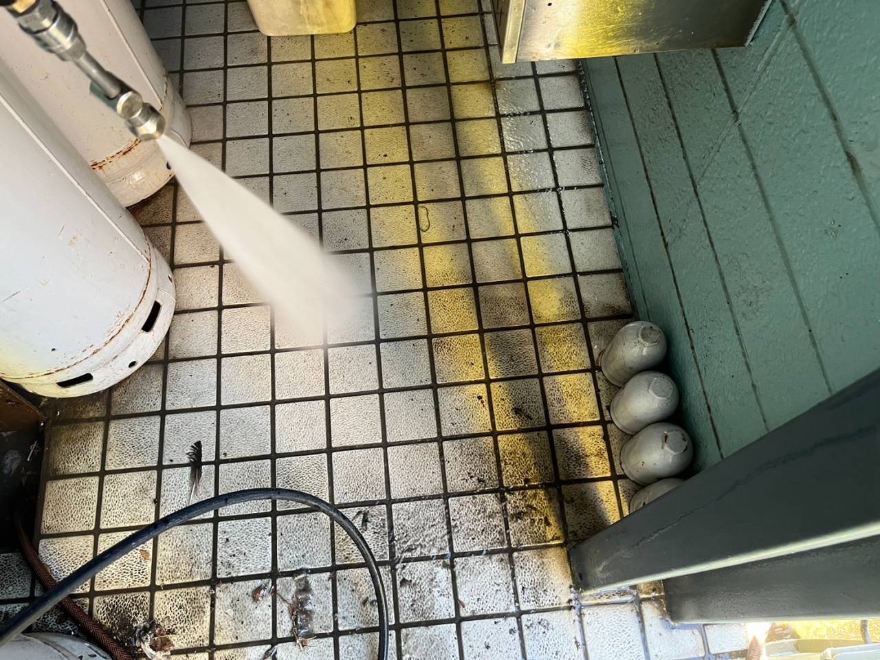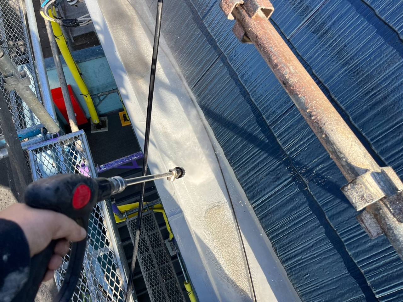 本日の作業内容、高圧水洗浄です。