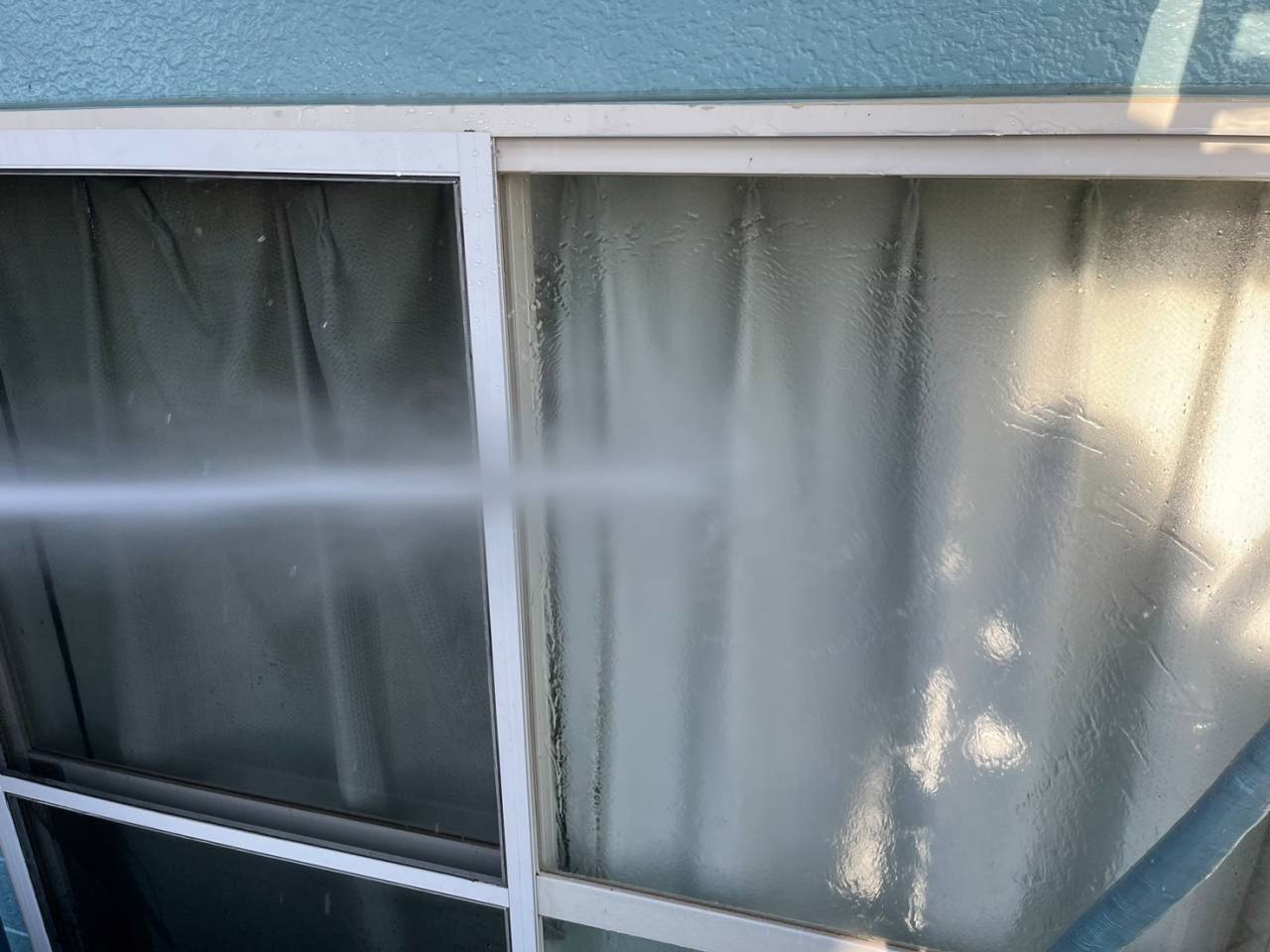 外壁のほか、雨樋やサッシまわり、ベランダの床面なども一緒に洗浄し、建物全体を清潔な状態に整えています。