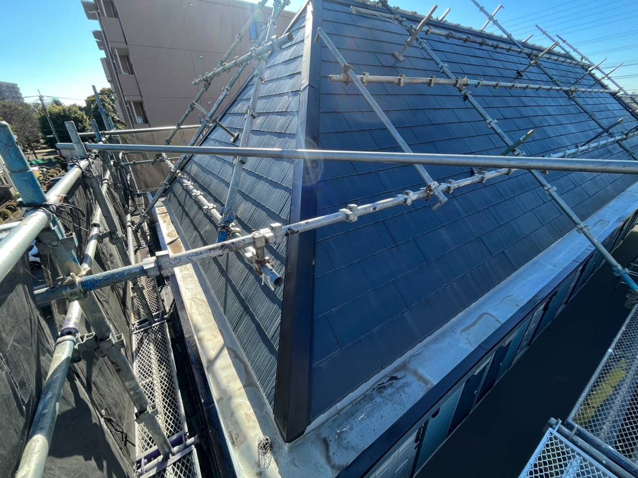 海老名市のY様O・R集合住宅、外装リフレッシュ工事、本日の作業内容は屋根棟板金釘頭打ち込み&シール、各所ケレン、錆止め塗布です。 2026/01/09 お問い合わせはこちら お電話でのお問い合わせはこちら 042-768-1008