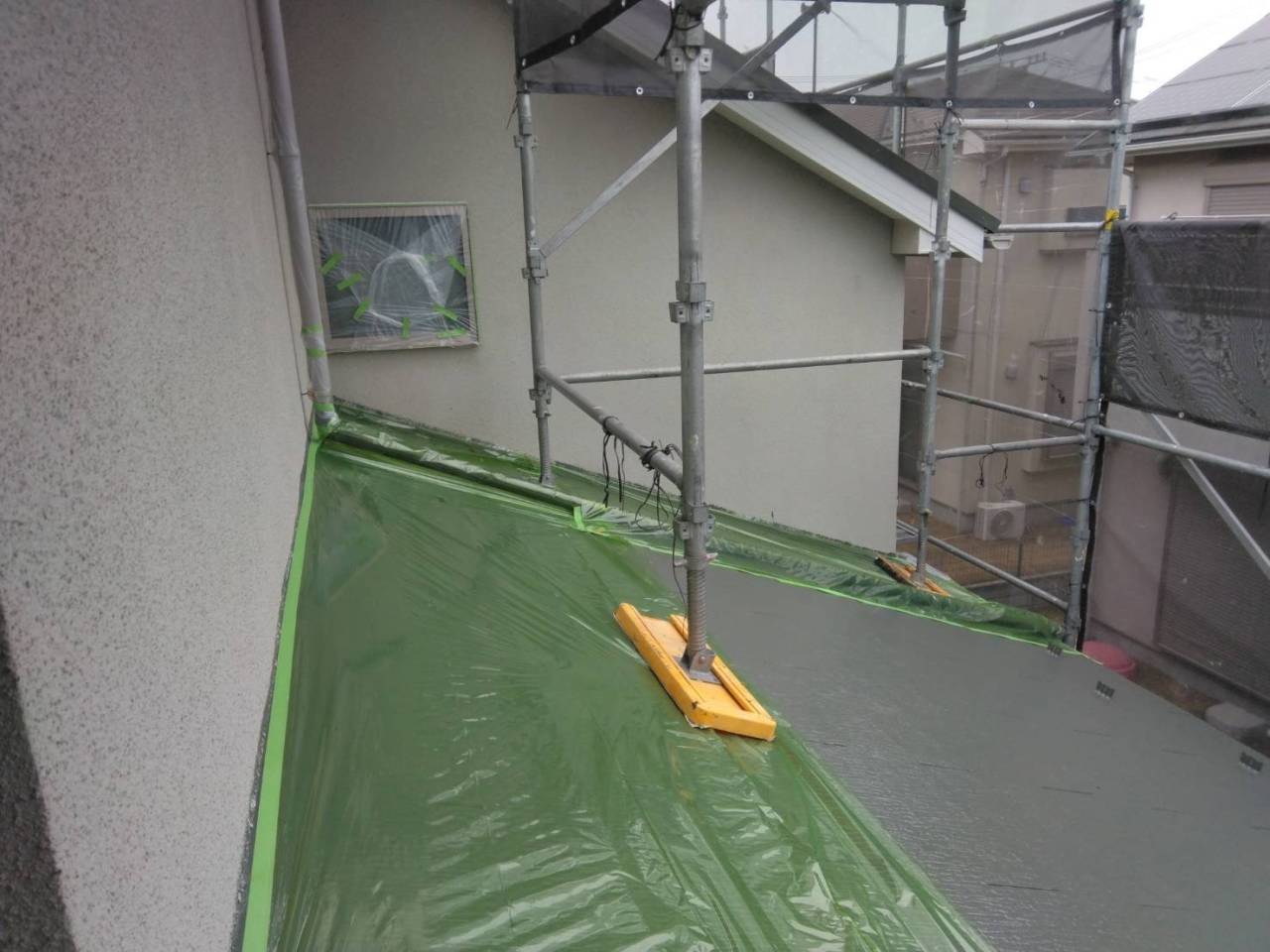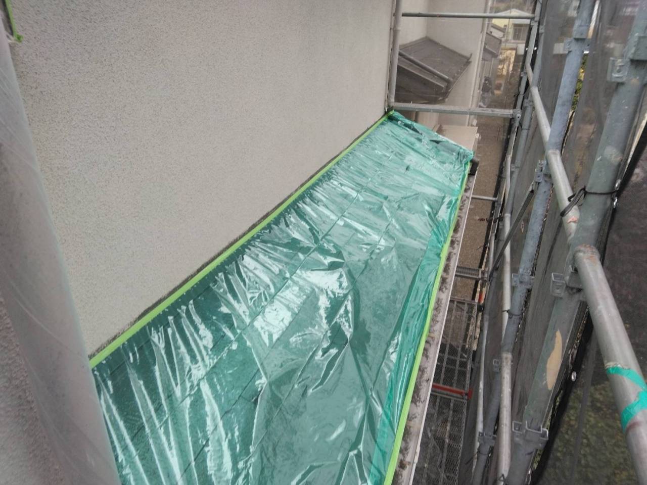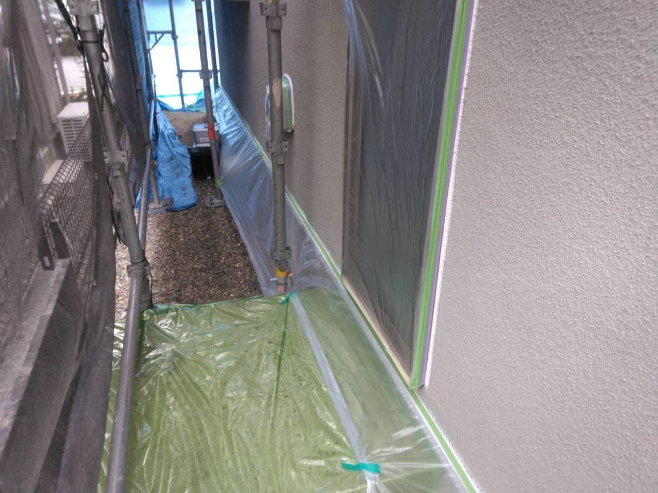 八王子市のA様邸、外壁塗装・屋根塗装工事、本日の作業内容は養生です。