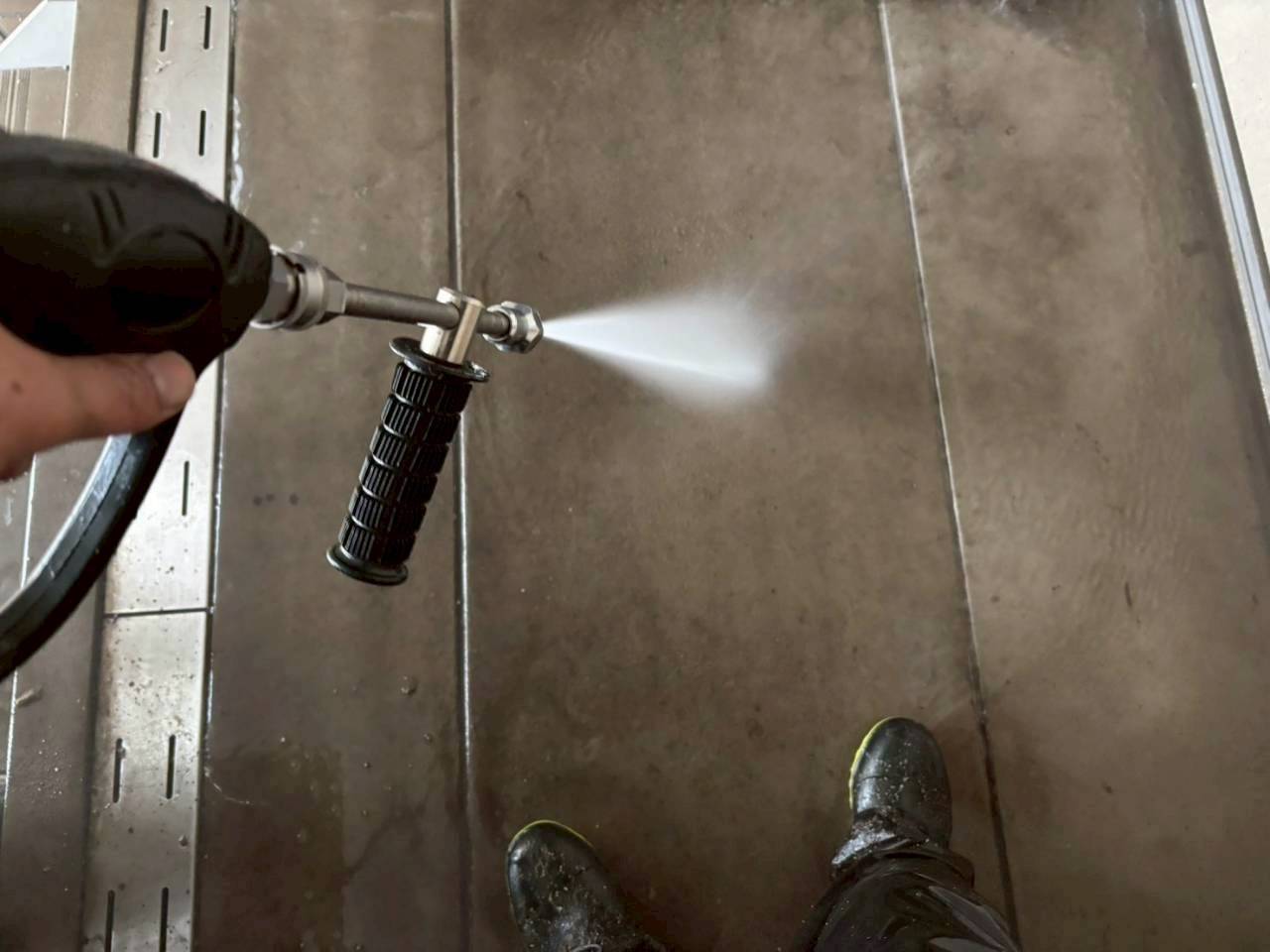本日の作業内容、高圧水洗浄です。