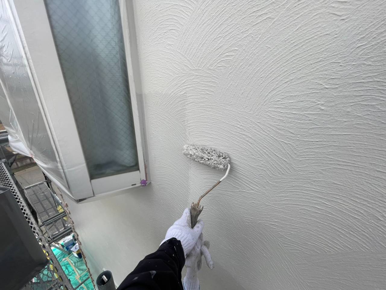 相模原市のS様邸、外壁塗装工事、本日の作業内容は外壁中塗りと上塗りです。