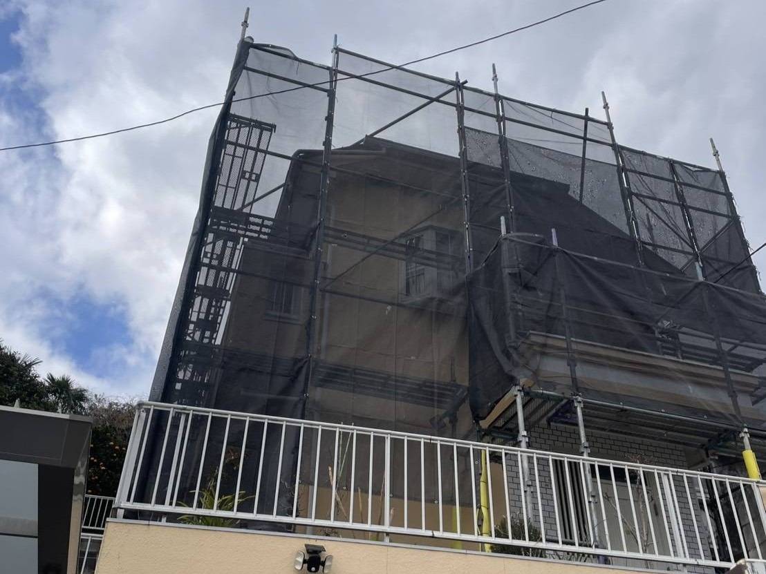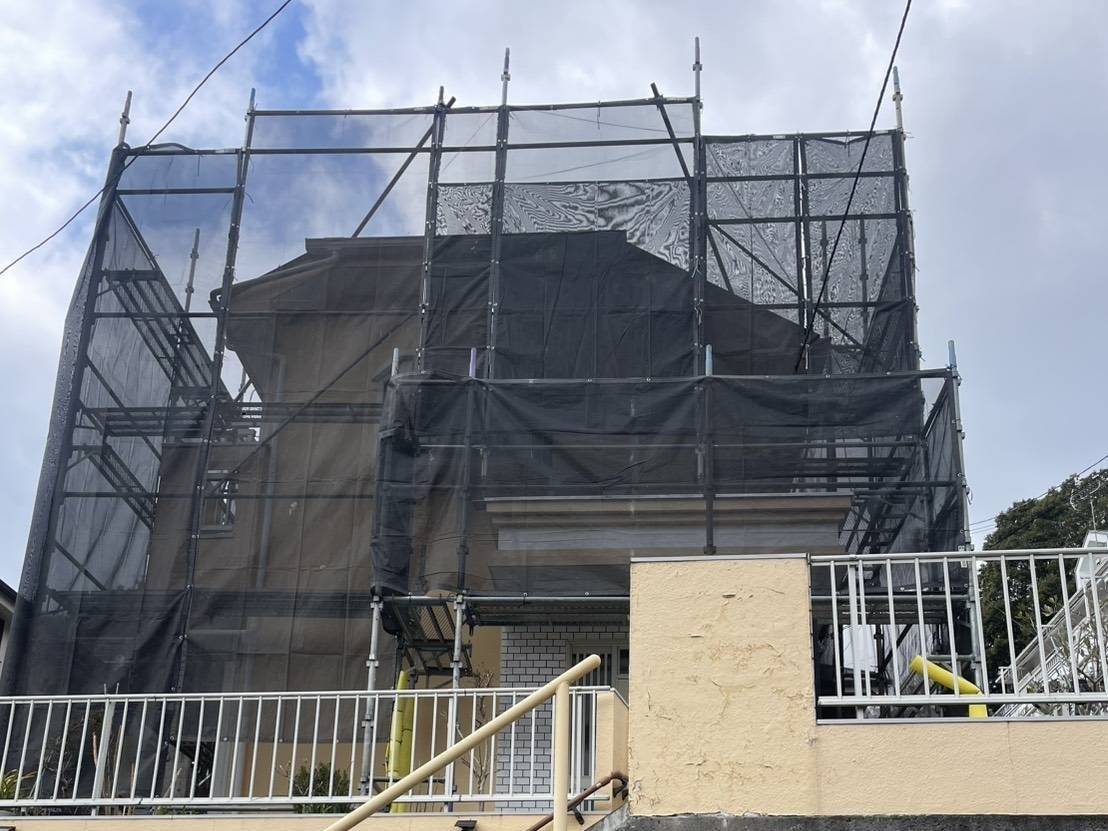 八王子市のK様邸、外壁塗装・屋根塗装工事、本日の作業内容は足場の組立です。