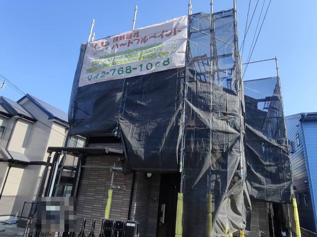 相模原市のK様邸、外壁塗装・屋根塗装工事、本日の作業内容は足場の組立です。