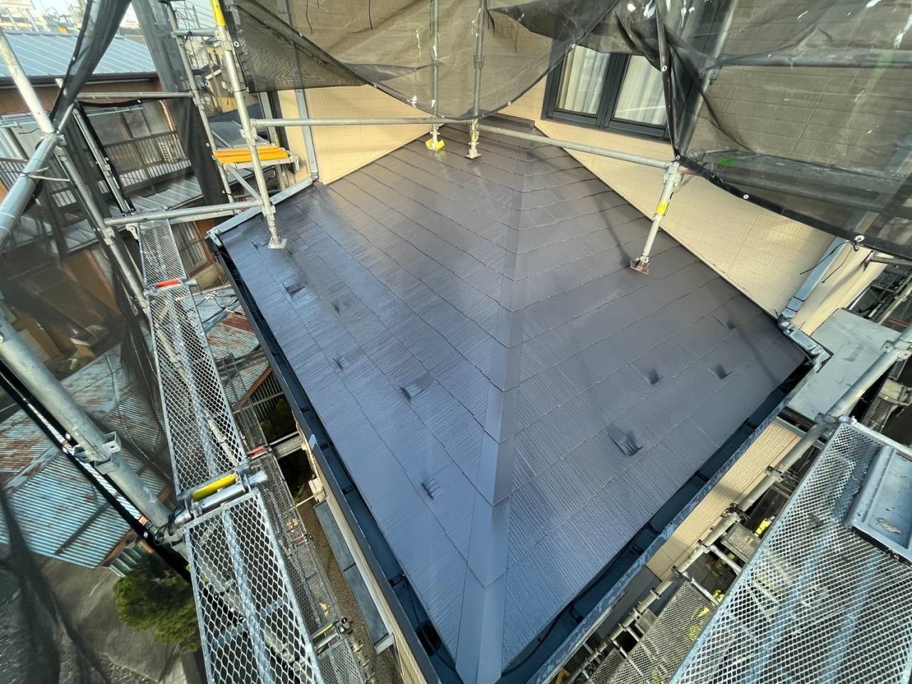 相模原市のS様邸、屋根塗装工事、4月18日の作業内容は大屋根上塗り、下屋根タスペーサー設置、下屋根中塗りと上塗り、換気フード中塗りと上塗り、各所シーリング補修、清掃です。 2026/04/20 4月18日の作業内容です。 大屋根上塗り、下屋根タスペーサー設置、下屋根中塗りと上塗り 換気フード中塗りと上塗り、各所シーリング補修、清掃です。 後の作業は足場の解体のみになります。 足場の解体は明日4月21日(火)を予定しております。 引き続きよろしくお願いいたします。 弊社では相模原市を中心に町田市・八王子市のお客様を工事させていただいております。 弊社では毎日施工内容がブログで見れる施工にて、相模原市を中心に 町田市・八王子市のお客様を工事させていただいております。 |毎日施工内容が見れる株式会社ハートフルペイント お問い合わせはこちら お電話でのお問い合わせはこちら 042-768-1008