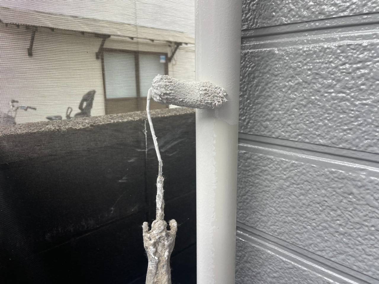 相模原市のH様集合住宅、外壁塗装・屋根塗装工事、昨日の作業内容は屋根上塗り、外壁上塗り、付帯部塗装です。