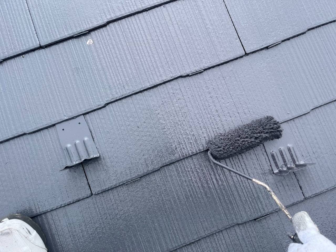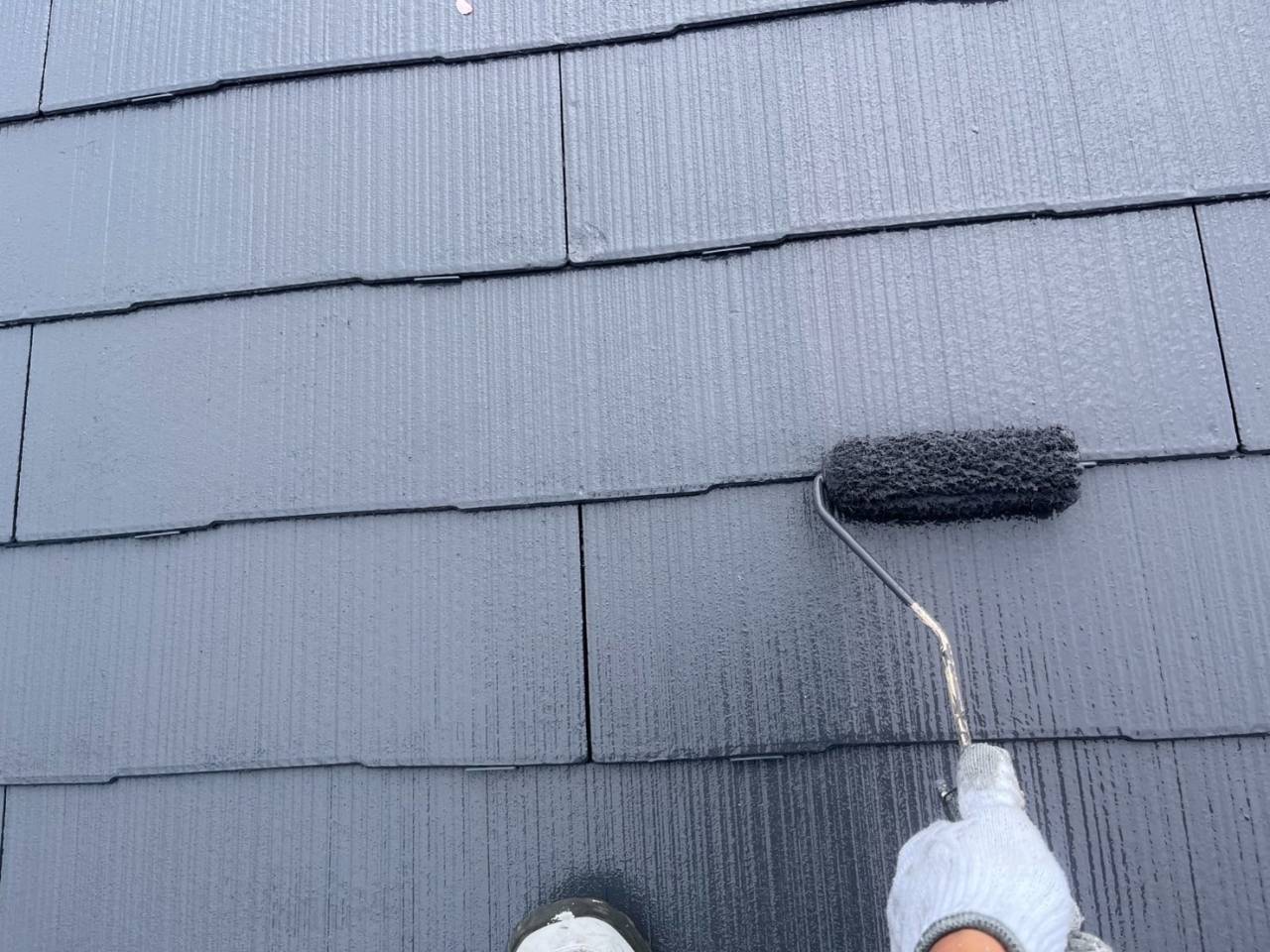 屋根上塗り、外壁上塗り、付帯部塗装です。