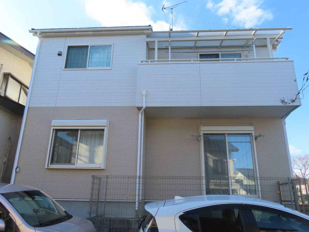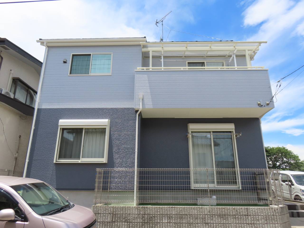 日本ペイント ラジカル制御塗料 ファインパーフェクトトップ 1階外壁 日塗工K75-40B 全艶 2階外壁 日塗工K75-70A 全艶