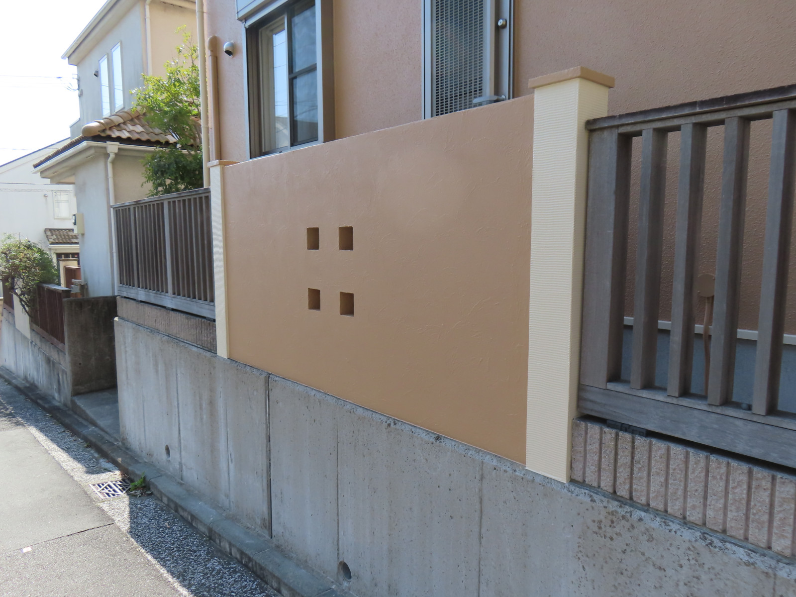 お家が綺麗になると目立つ「外構の汚れ」。門塀の塗装もセットでお任せください。